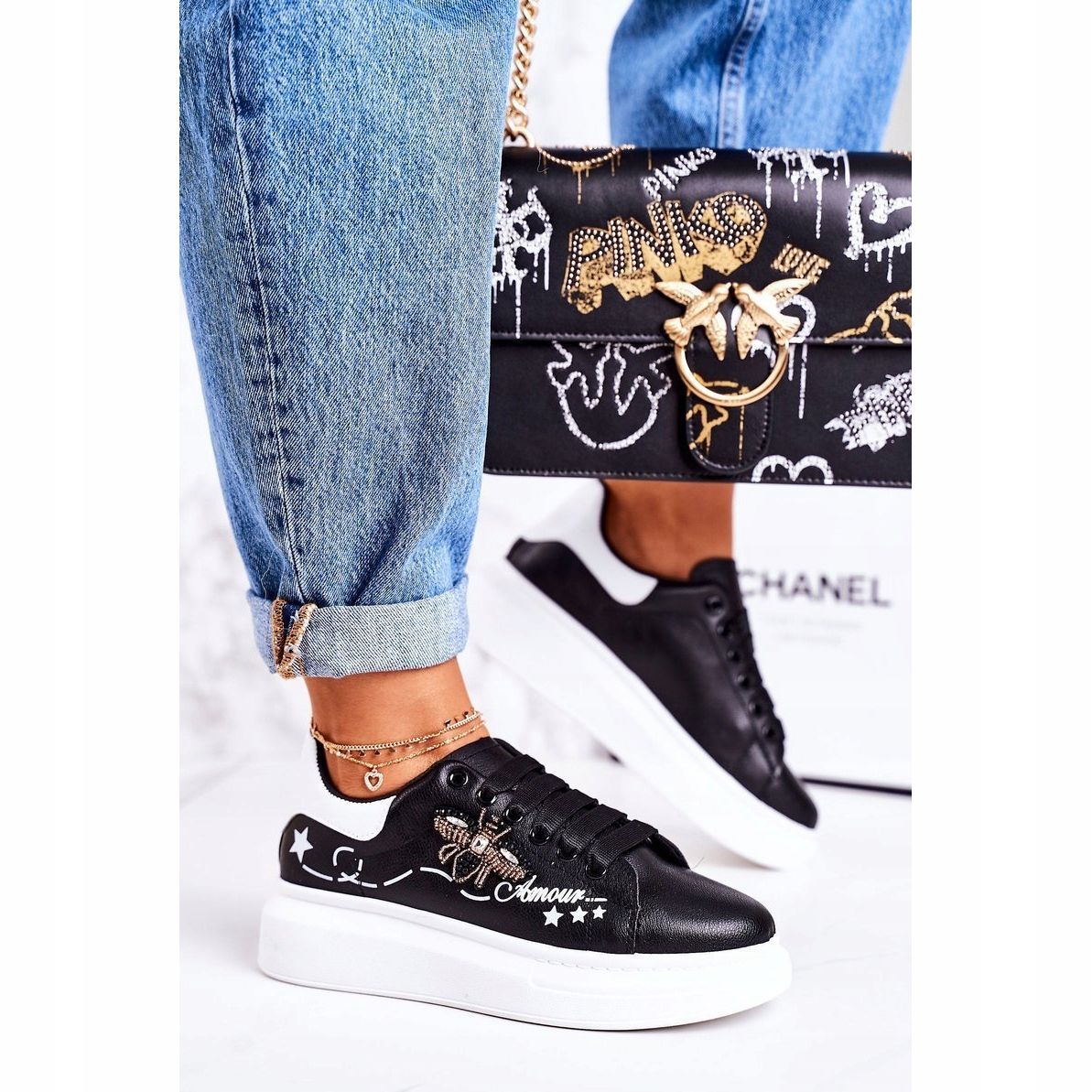 Představujeme Dámské sportovní tenisky s motýlkem v elegantní černé barvě, které dokonale spojují styl s pohodlím. Tyto originální tenisky s ozdobným motýlkem jsou vyrobeny z vysoce kvalitní ekologické kůže, díky čemuž jsou šetrné k životnímu prostředí a zároveň stylové.