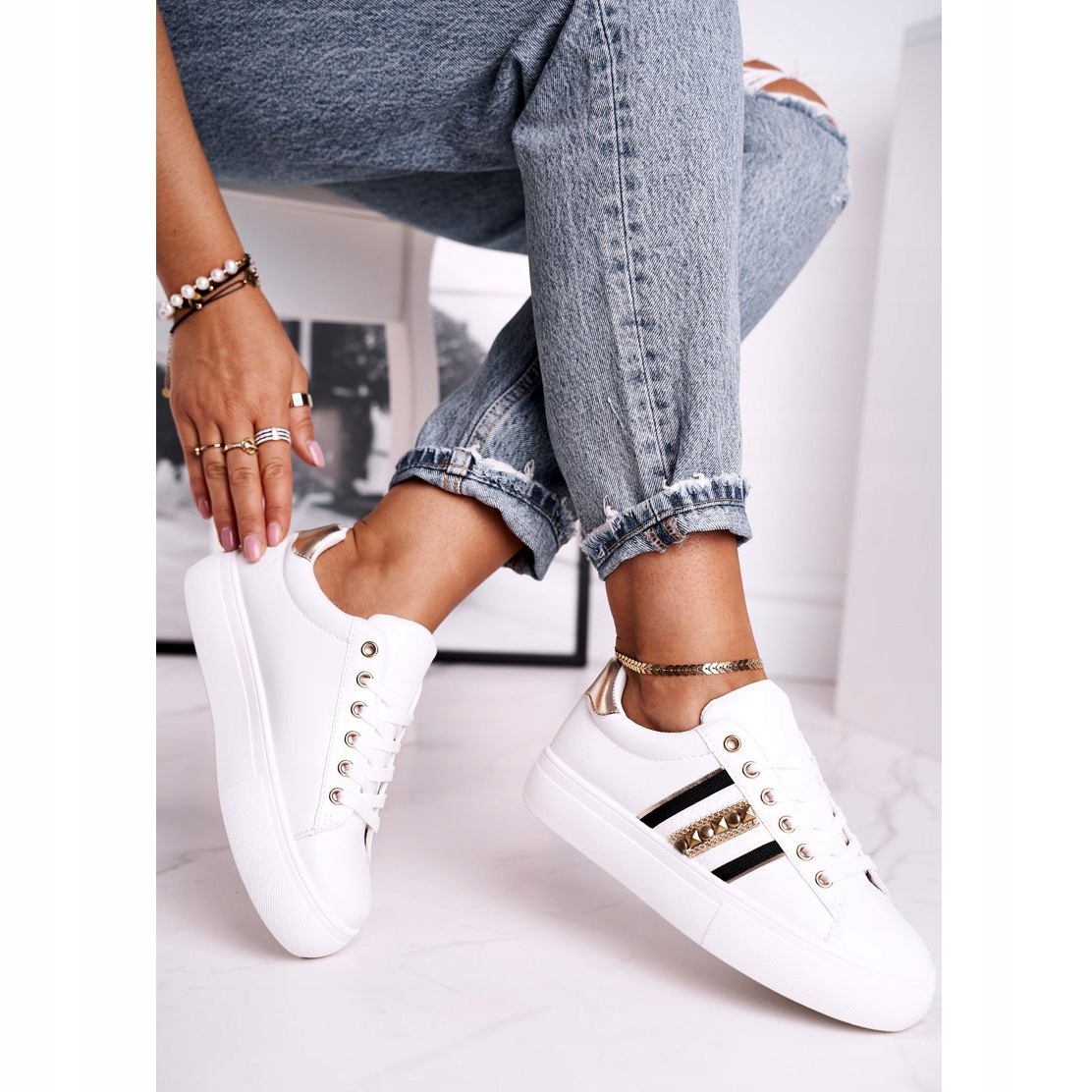 Další výhodou jsou stylové zlaté prvky a jemné kamínky, které dodají každému stylingu originalitu. Zapínání na šněrování umožňuje snadné přizpůsobení noze a kulatá špička zajišťuje volnost pohybu. Boty Rylee jsou nízké, takže jsou ideální pro teplejší dny.