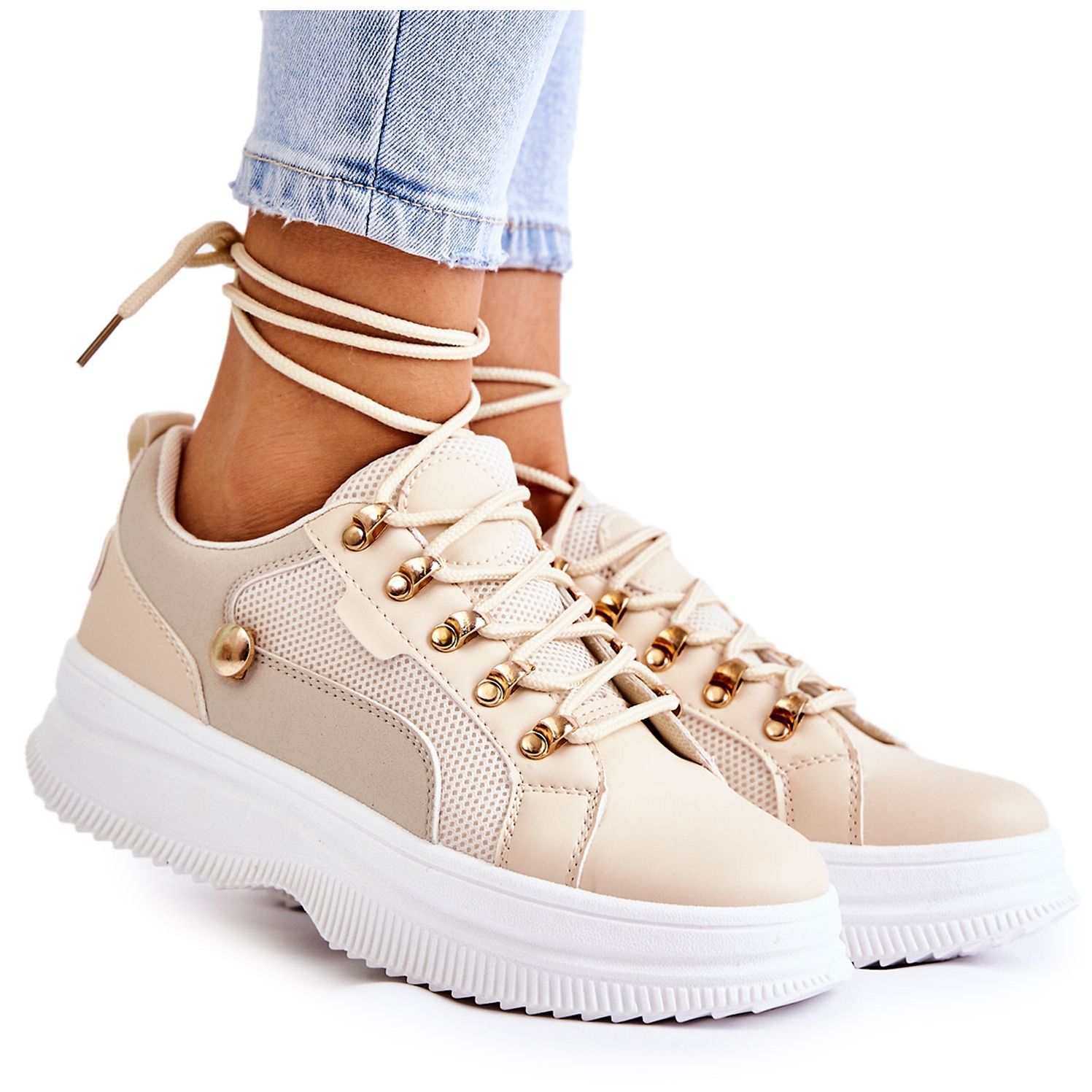 Podrobnosti: PG1 Dámské sportovní kožené boty Béžová Salmira béžový