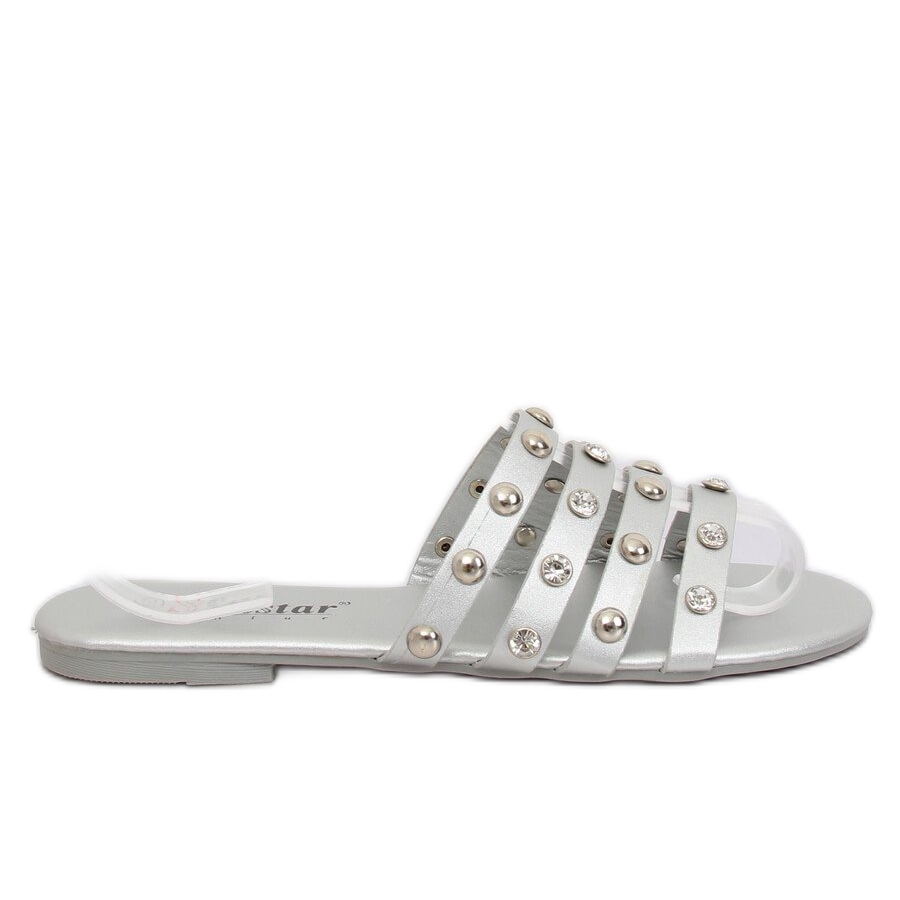 Inna marka Dámské stříbrné pantofle DD83P Silver šedá