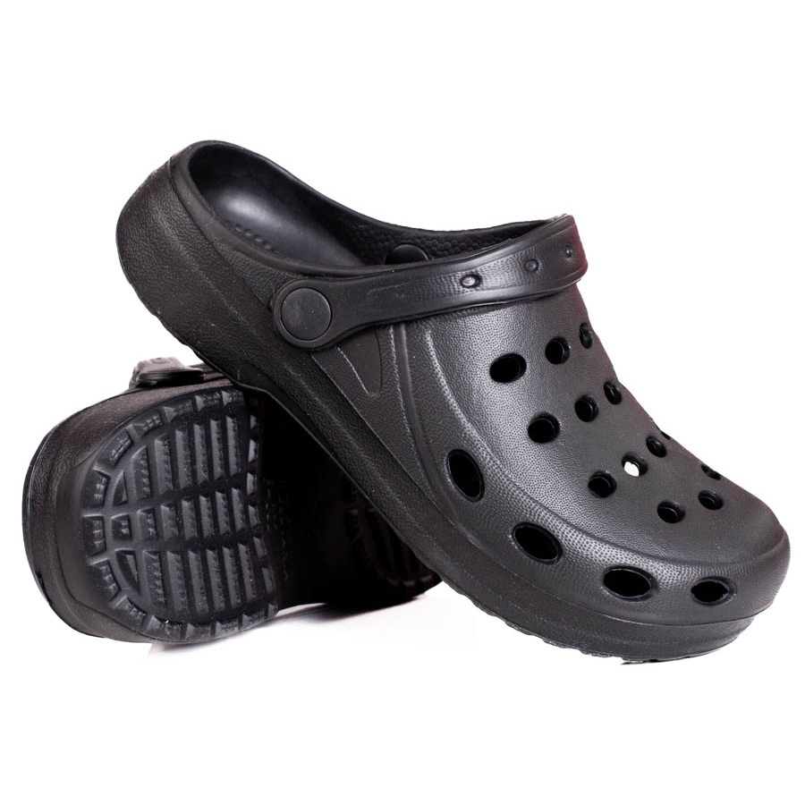 Objevte mimořádnou lehkost a pohodlí nošení díky černým dámským žabkám Shelovet. Ideální na jaro a léto, tyto sportovní skluzavky jsou skvělou každodenní volbou. Vyrobeny ze 100% vysoce kvalitní gumy, zaručují nejen odolnost, ale i pohodlí. Díky otevřené patě a nazouvacímu designu se extrémně snadno nazouvají a prolamovaná konstrukce zajišťuje dostatečné větrání.