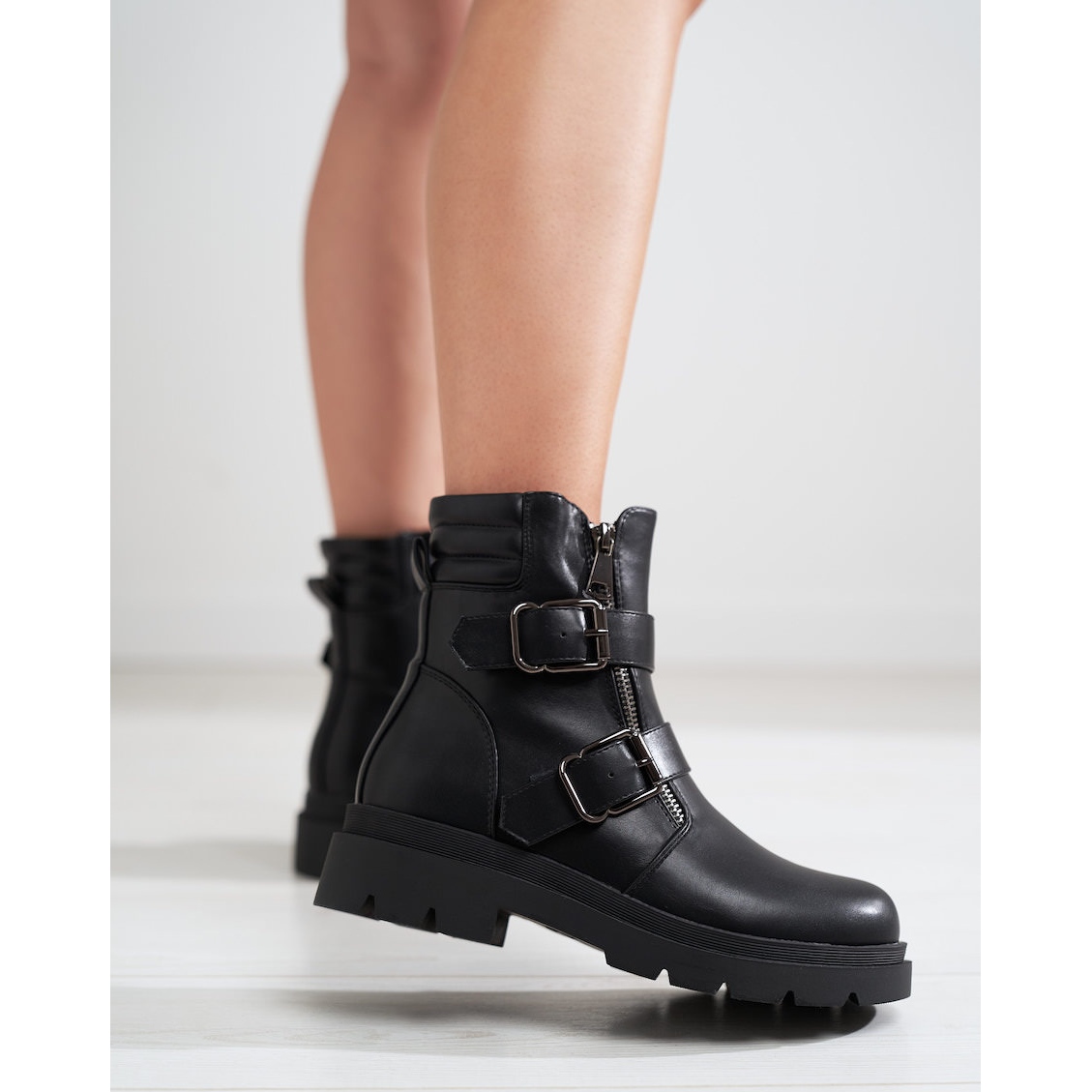 Klasické a zároveň s značkami - černé ženské pracovníky. Další značka je návrh pro ženy, které si cení pohodlí a módního stylu. Vyrobeno z ekologické kůže, izolované přikrývkou obuvi, budou pracovat na chladnějších dnech a poskytují teplo a pohodlí. Stabilní podrážka s běhounem a platformou (2,5 cm) a 4,5 cm paty přidejte několik centimetrů vysoký, aniž by se vzdali pohodlí každodenního používání. Kasta zipu a dekorativní spony zdůrazňují skalní povahu bot a zároveň usnadňují nasazení.