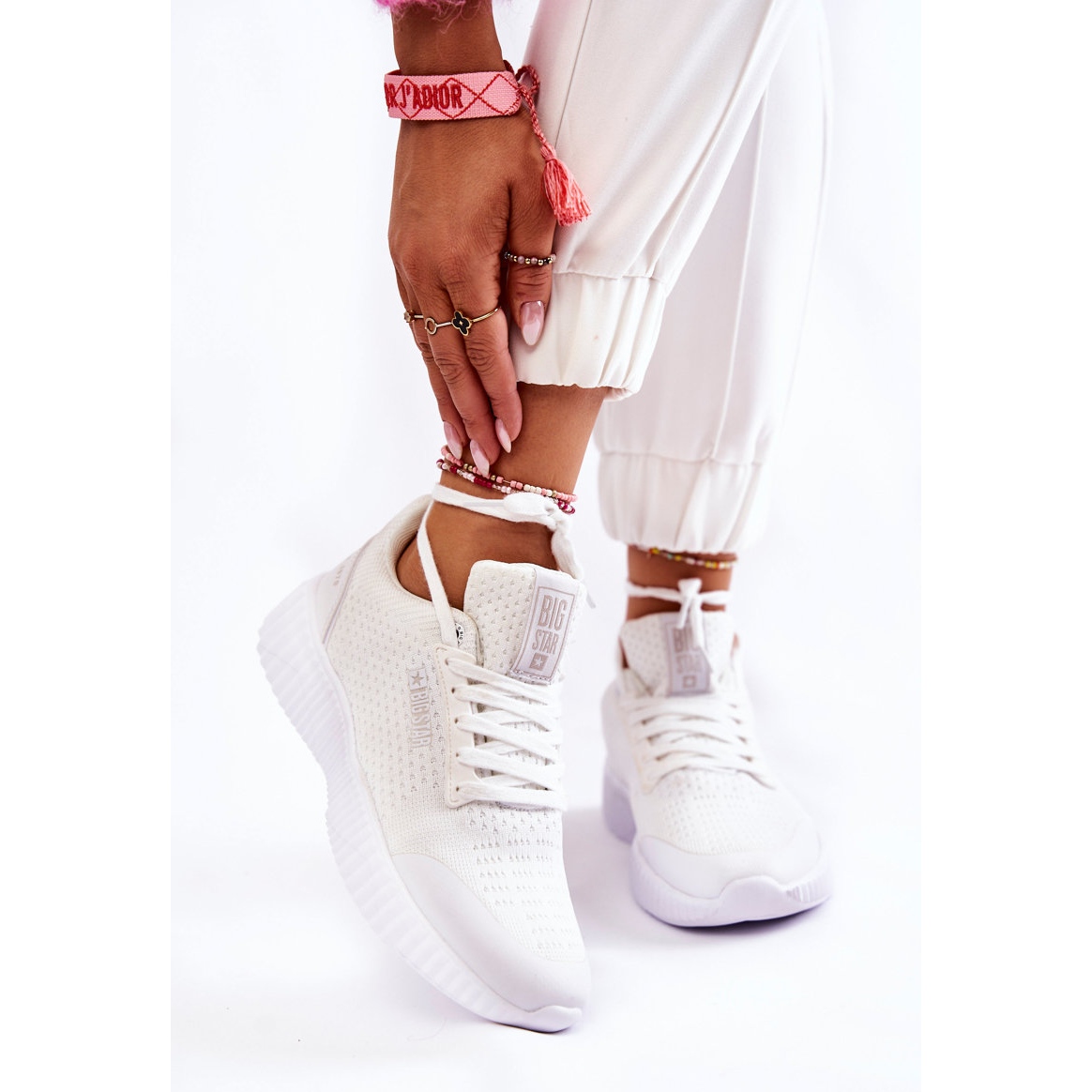 Dámské tenisky Big Star KK274062 v bílé barvě jsou perfektní volbou pro aktivní ženy, které hledají pohodlí a styl při každodenním stylingu. Tyto tenisky jsou vyrobeny z vysoce kvalitní kombinace prodyšné tkaniny a ekokůže a poskytují dostatečnou ventilaci a pohodlí při nošení. Jejich lehký design je předurčuje pro všechny aktivity, od každodenních procházek až po rychlé výlety do města.