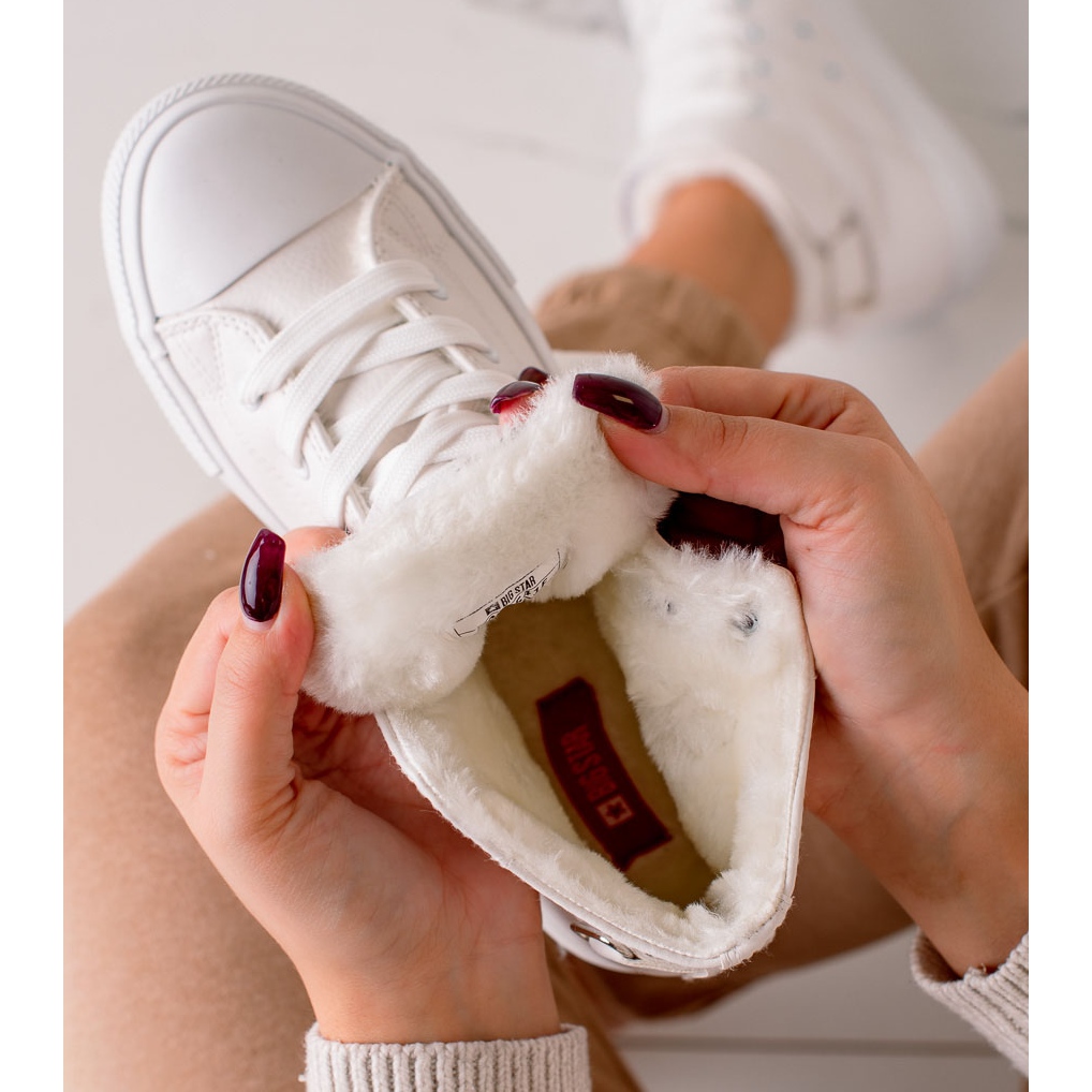 Dámské tenisky Big Star V274541 v bílé barvě jsou ideální nabídkou pro ženy, které oceňují pohodlí, styl a moderní design. Tyto vysoké tenisky vyrobené z kvalitních materiálů mají svršek z imitace kůže, která zaručuje nejen elegantní vzhled, ale také snadnou údržbu. Díky měkkému vestavěnému podpatku se pohodlně nosí po celý den a kožešinové zateplení je předurčuje nejen na jaro a léto, ale i na podzimní dny.