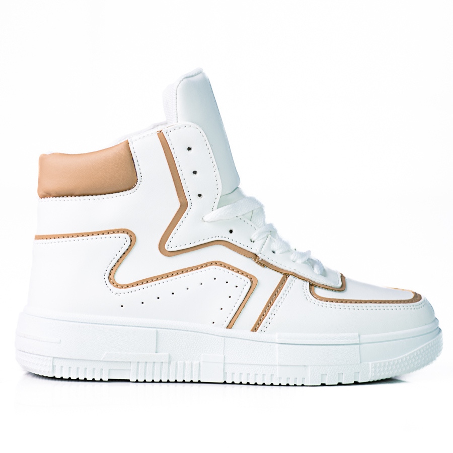 Dámské vysoké tenisky Shelovet jsou perfektní volbou pro ženy, které si cení pohodlí a moderního stylu. Tyto sportovní boty vyrobené z ekologické kůže v bílé a béžové barvě jsou ideální pro každodenní použití a dodávají ležérní charakter každému stylu.