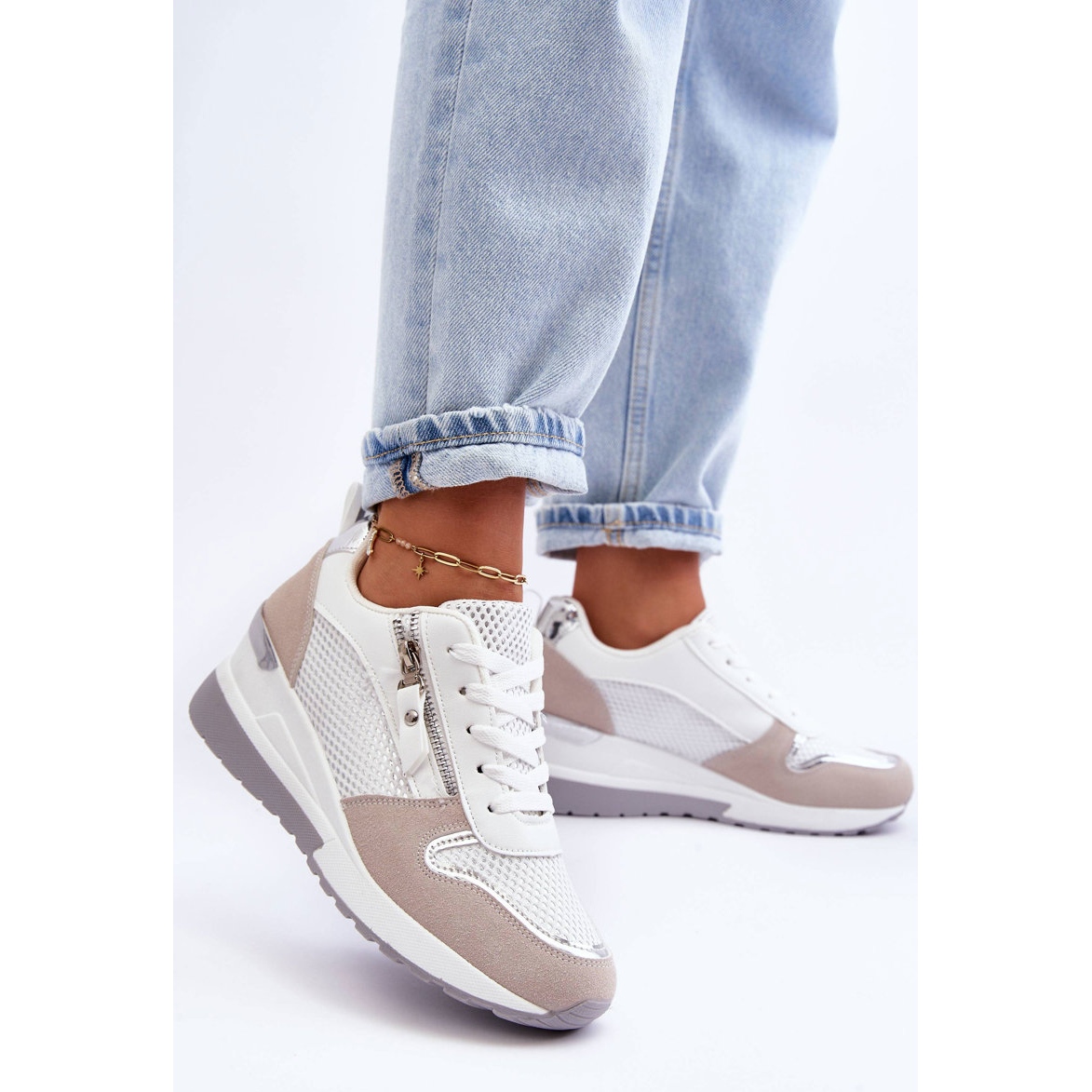 Moderní tenisky Sivan kombinují sportovní postavu s ženskou elegancí. Nastaveno na stabilním klínu (6 cm) a platformě (2 cm) poskytují postavu lehkost a zrcadlo, kovové vložky přidávají styl. Vyrobeno z kombinace ekologické kůže a textilního materiálu, s šněrováním a praktickým posuvníkem, který usnadňuje uvedení. Měkká pěna a vložka látky poskytuje pohodlí po celý den - ideální pro mnoho neformálních a městských stylů.
