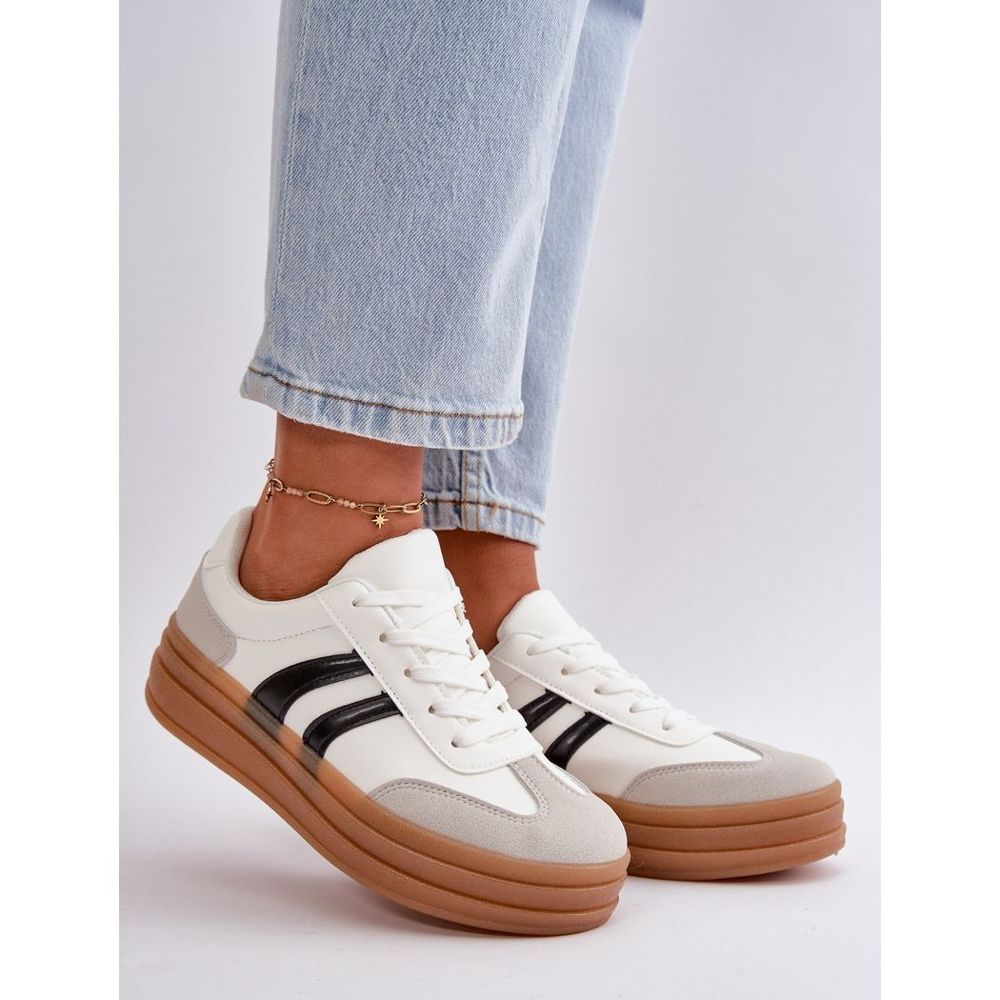 Ženské tenisky na platformě White and Grey Nesonice jsou perfektní kombinací stylu a pohodlí, která bude fungovat v každé denní stylizaci. Tyto módní tenisky se rozlišují elegantním designem a originální kombinací bílé barvy s šedými akcenty. Na sestavení na 3,5 cm vysoké platformě přidávají nejen několik centimetrů vysokých, ale také zavádějí moderní přízvuk do vašeho šatníku.
