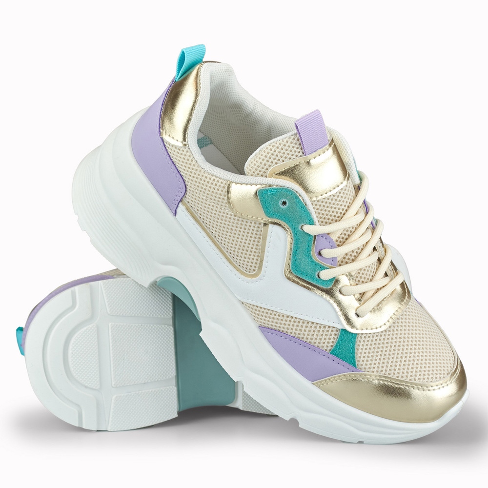 Stylové a pohodlné tenisky Geori od jiné značky, které kombinují módní, vícenásobný design se zlatými akcenty. Horní vyrobená z ekologické kůže a textilních materiálů a platformy 6 cm zvyšuje důvěru a zdůrazňuje postavu a udržuje pohodlí po celý den. Ideální pro sezónu jaro/letní - pro městské stylizace, pro procházku a příležitostné výstupy.