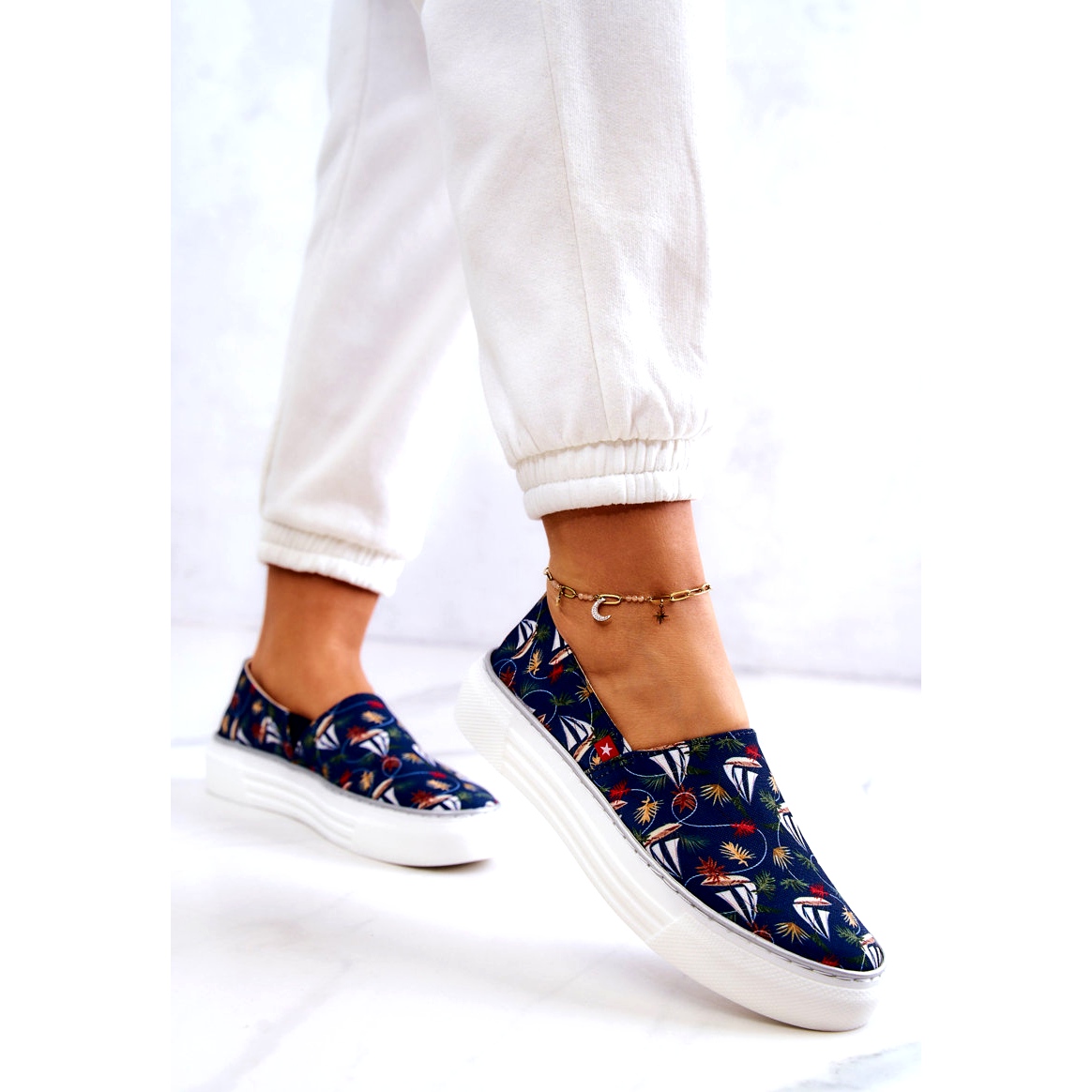 Big Star Dámské tenisky Slip On Memory Foam Big Star JJ276016 Navy Blue modrý
