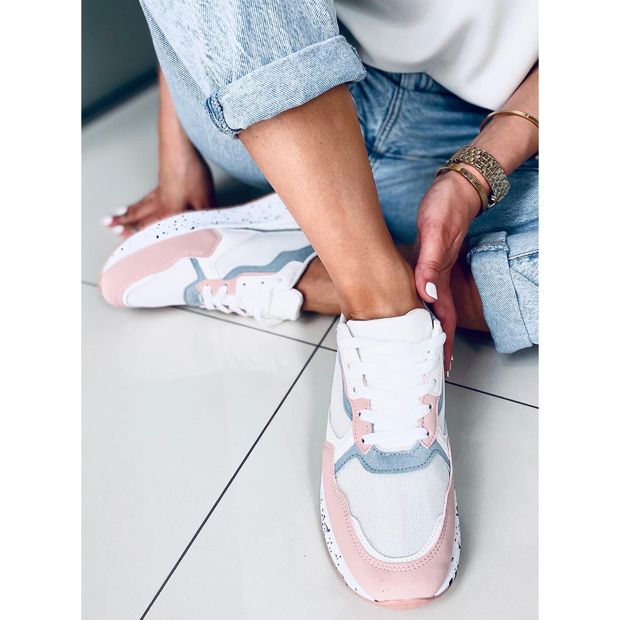 Tyto tenisky vyrobené z vysoce kvalitních materiálů, jako je ekologická kůže, látka a ekologický semiš, se vyznačují nejen estetikou, ale také odolností. Kulatá špička a plochý podpatek zaručují pohodlí při nošení a zapínání na šněrování umožňuje dokonalé přizpůsobení noze.