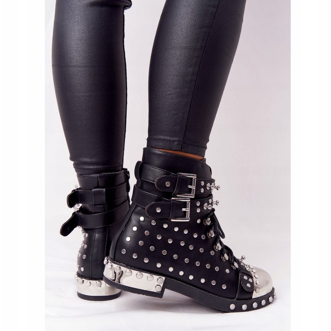 Detaily, jako jsou kamínky a přezky, jim dodávají jedinečný charakter, který se hodí k různým stylům, od glam rocku po grunge. Plochý 3 cm vysoký podpatek a 15 cm výška svršku zaručí pohodlné nošení a zapínání na šněrování umožňuje dokonalé přizpůsobení noze.