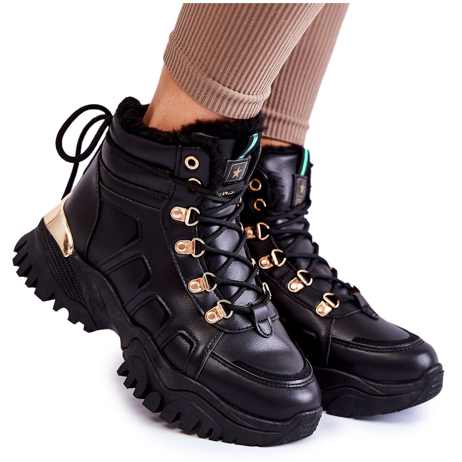 PE1 PE1 Dámské Teplé Kozačky Na Platformě Černá Ofelia