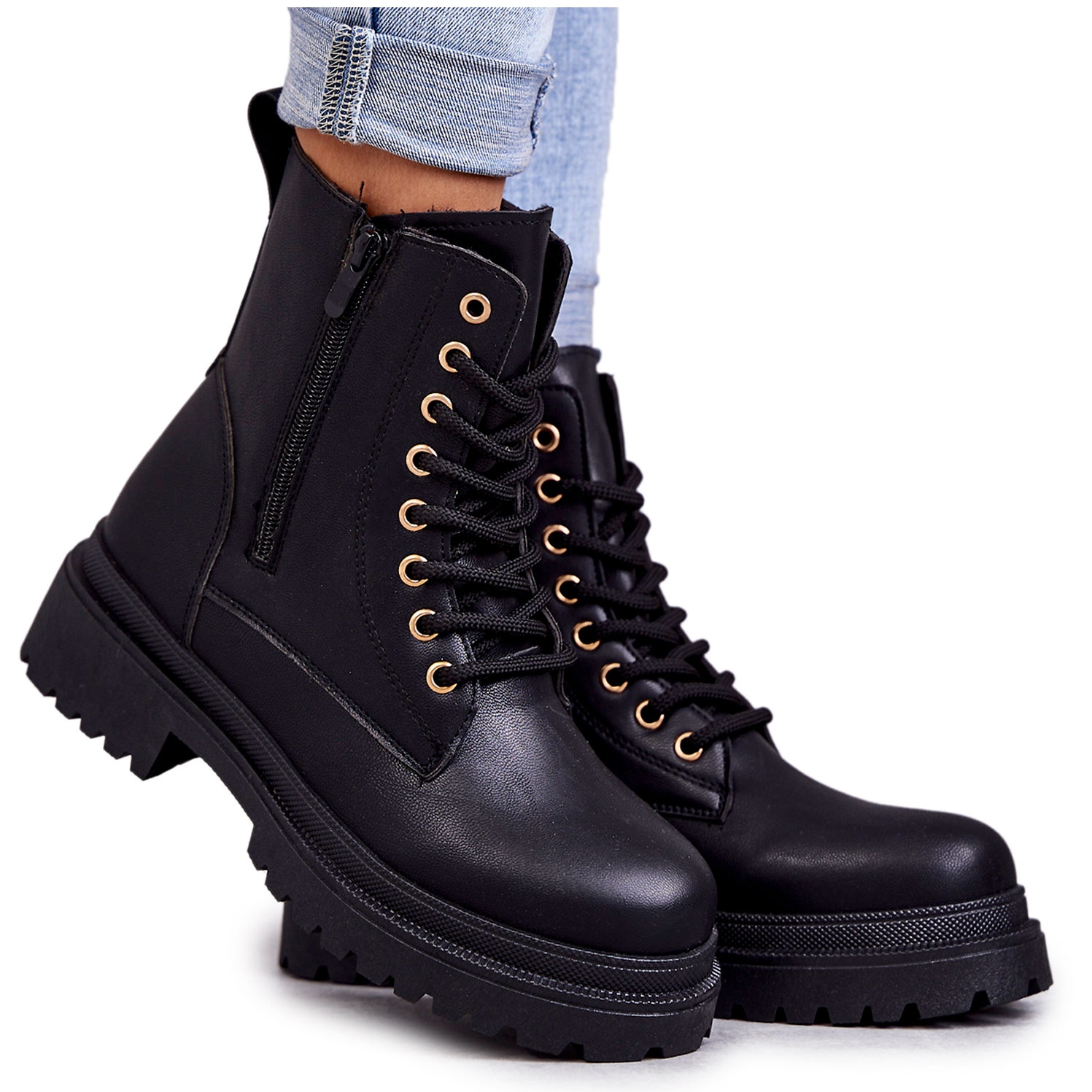 Klasické, elegantní a teplé - černé ženské boty Dorchen vyrobené z ekologické kůže, izolované přikrývkou boty. Kombinace pohodlí (šněrování + zámek), stabilní platformy a plochého paty s drážkou z něj činí univerzální model pro chladnější dny.