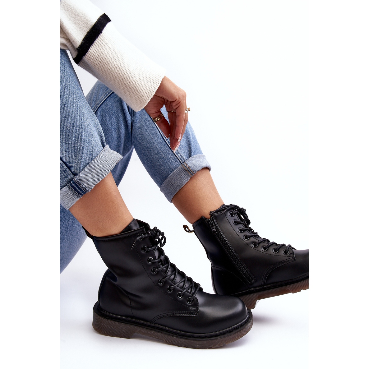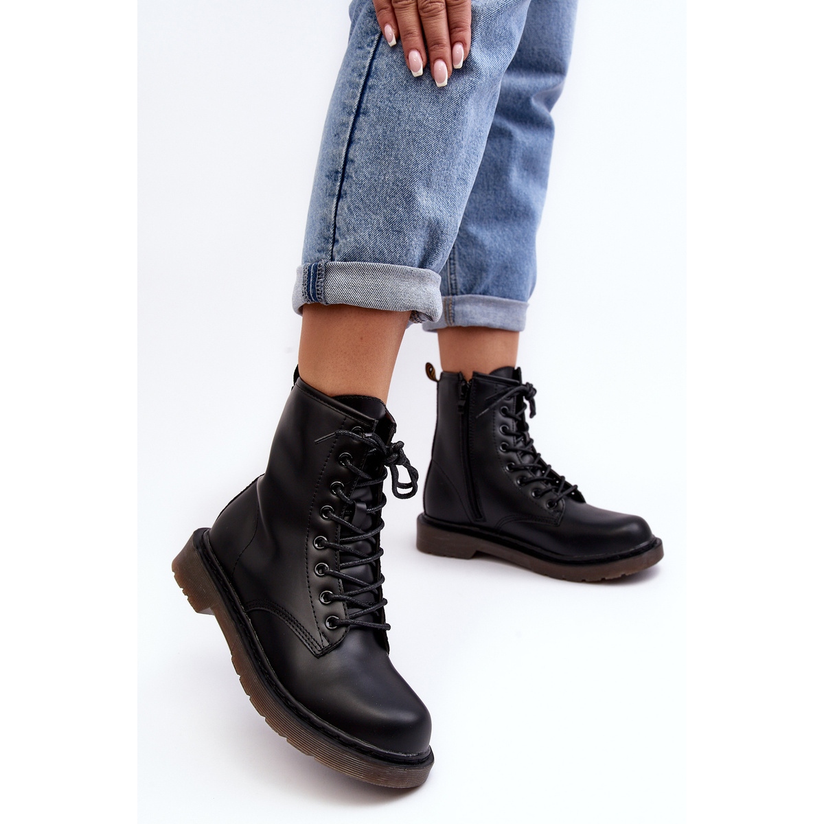 Klasické, nadčasové turistické boty, které budou pracovat v každodenních stylizacích pro podzimní/zimní sezónu. Vyrobeno z ekologické kůže, zabudované do plochého paty s nesklipovou gumovou podrážkou - kombinují pohodlí se syrovou, módní postavou. Model přikrýval další zámek pro snadný předpoklad. Zaoblené nosy, ztuhlé pro lepší stabilizaci nohy. Žádná izolace - ideální pro chladnější, ale ne mrazivé dny.