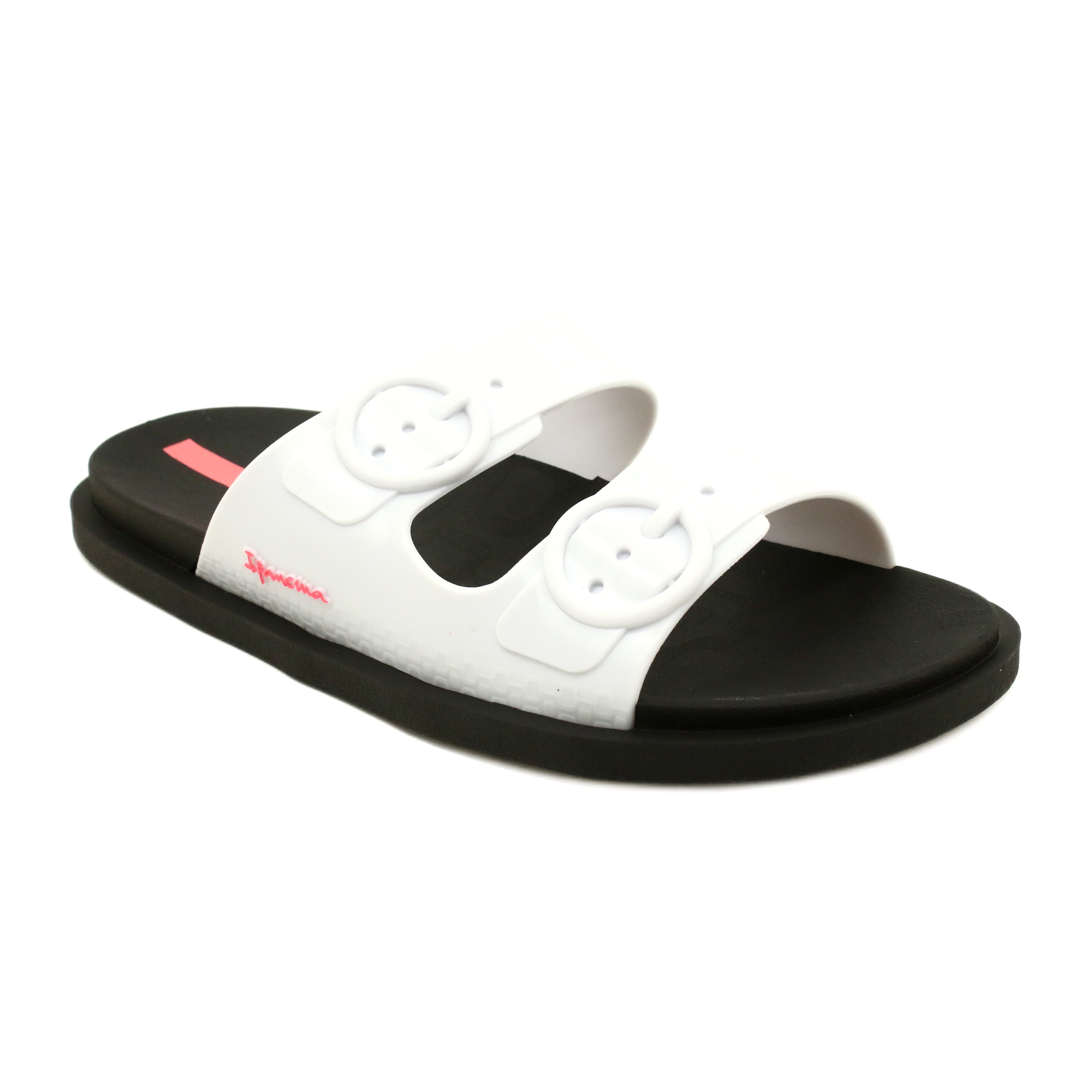 Elegantní, pohodlné a praktické pantofle Ipanema 26877 Sledujte FEM v černé/bílé barvě - bílé pruhy na černé podrážce. Díky měkké, flexibilní gumě se dobře přizpůsobují noze, bez deformací a dvou gelových proužků stabilních stabilních pro podporu - neklouzávejte dolů při chůzi, což má velký význam na mokrém, kluzkém povrchu bazénu.