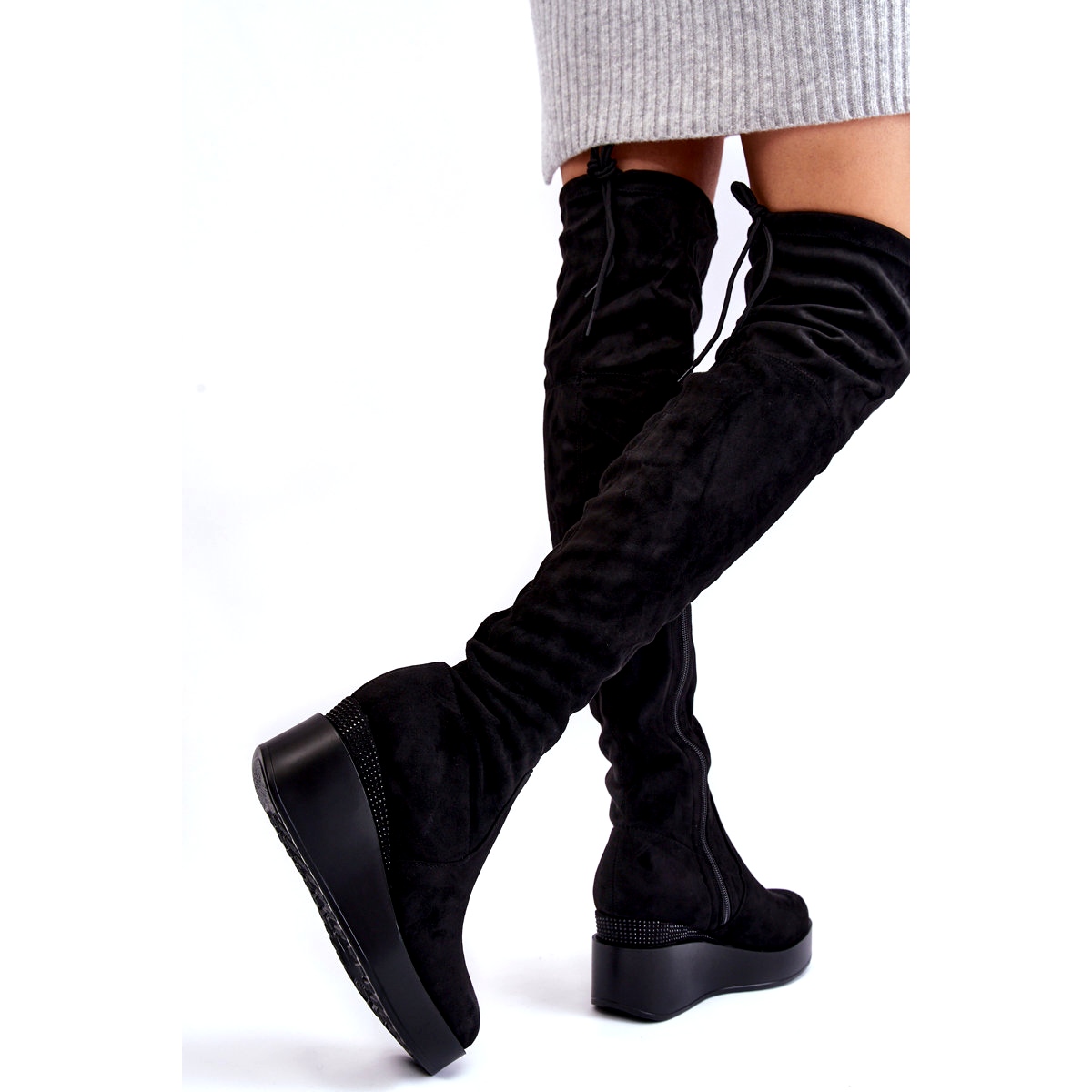 - Modelka: Dámské vysoké kozačky na klín do stehna
