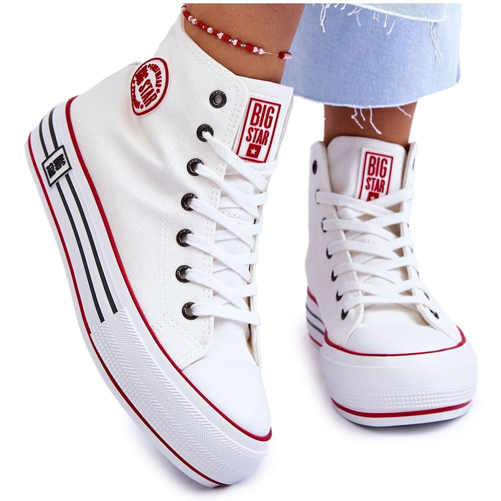 Big Star Dámské vysoké textilní tenisky na platformě Big Star LL274185 Bílé bílý