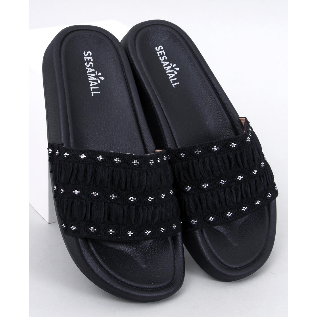 Model je charakterizován širokým pásem zdobeným jemnými zirkony, který dokonale drží nohu, takže každý okamžik strávený v těchto překlopech je skutečným potěšením. Plochá podrážka s výškou 2 cm zajišťuje stabilitu a pohodlí, ideální pro každodenní procházky nebo okamžik relaxace.