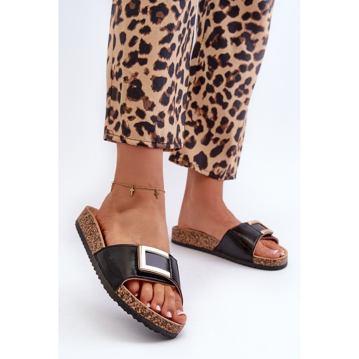 Praktický přední popruh, připevněný suchým zipem, zaručuje rychlé a snadné přizpůsobení, díky čemuž jsou ideální pro každodenní použití. Zlatá dekorace jim dává zvláštní záře, díky kterému klapky získají elegantní postavu a zároveň zůstávají neformální.
