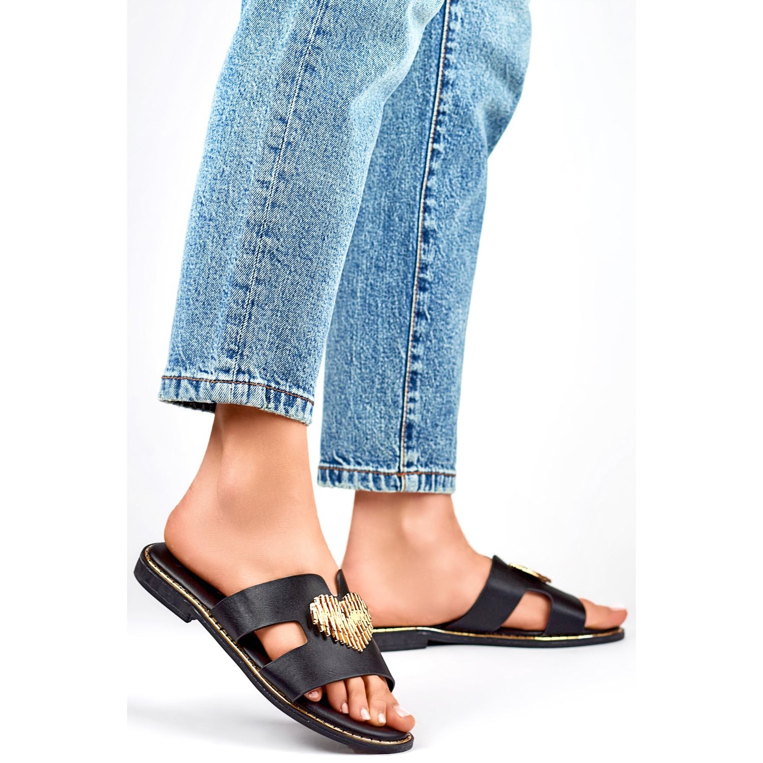** Dámské žabky se srdcem KK-731B Black-Elegance a pohodlí na léto! **