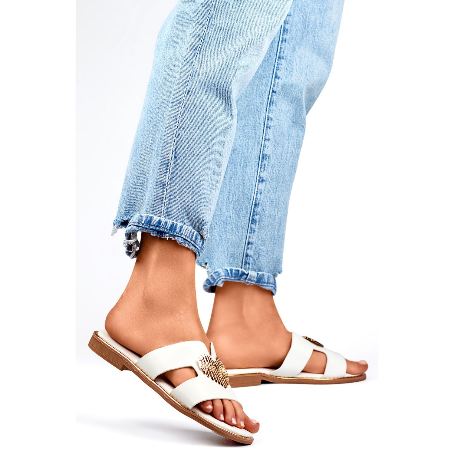 Inna marka Dámské žabky zdobené srdcem KK-731W bílé bílý