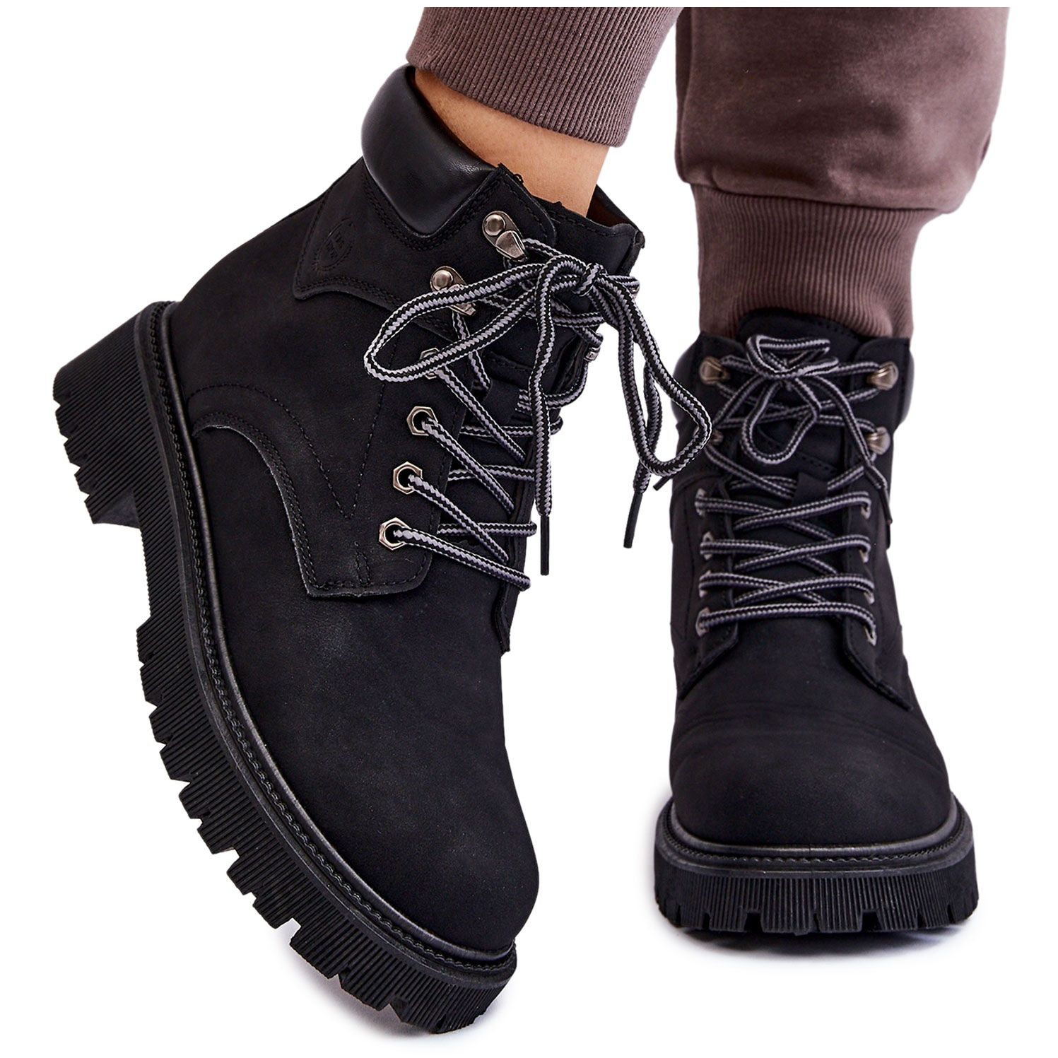 Podrobnosti: PG1 Dámské zateplené boty Černé šněrovací boty Trapper černá