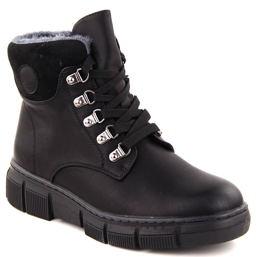 Boty jsou k dispozici v klasické černé barvě, což z nich činí extrémně univerzální prvek každého šatníku. Příležitostný řez kulatým nosem z nich dělá skvělý doplněk jak každodenních, tak elegantnějších stylizací. Další výhodou jsou šněrovací upevňovací prvky, které vám umožní dokonale odpovídat noze.