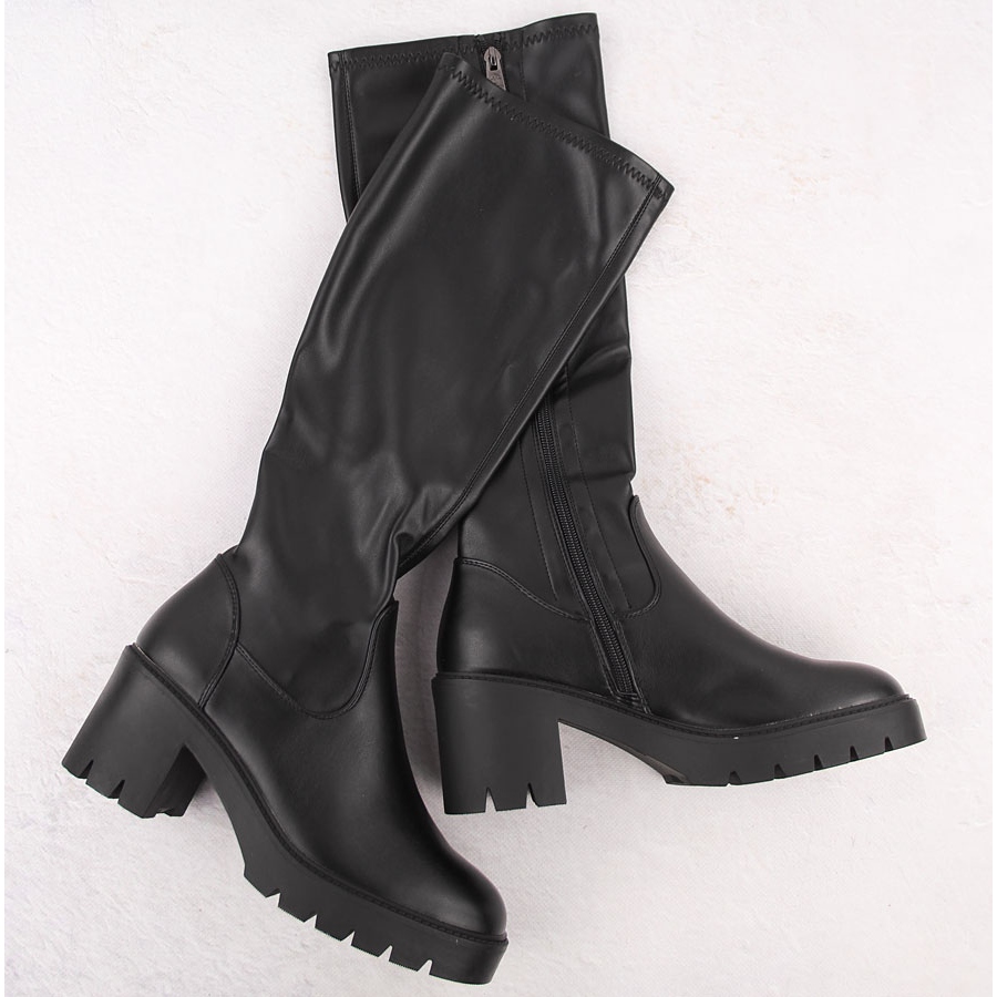 Vinceza Dámské zateplené kozačky na vysokém podpatku a platformě, černé Vinceza 58332 černá