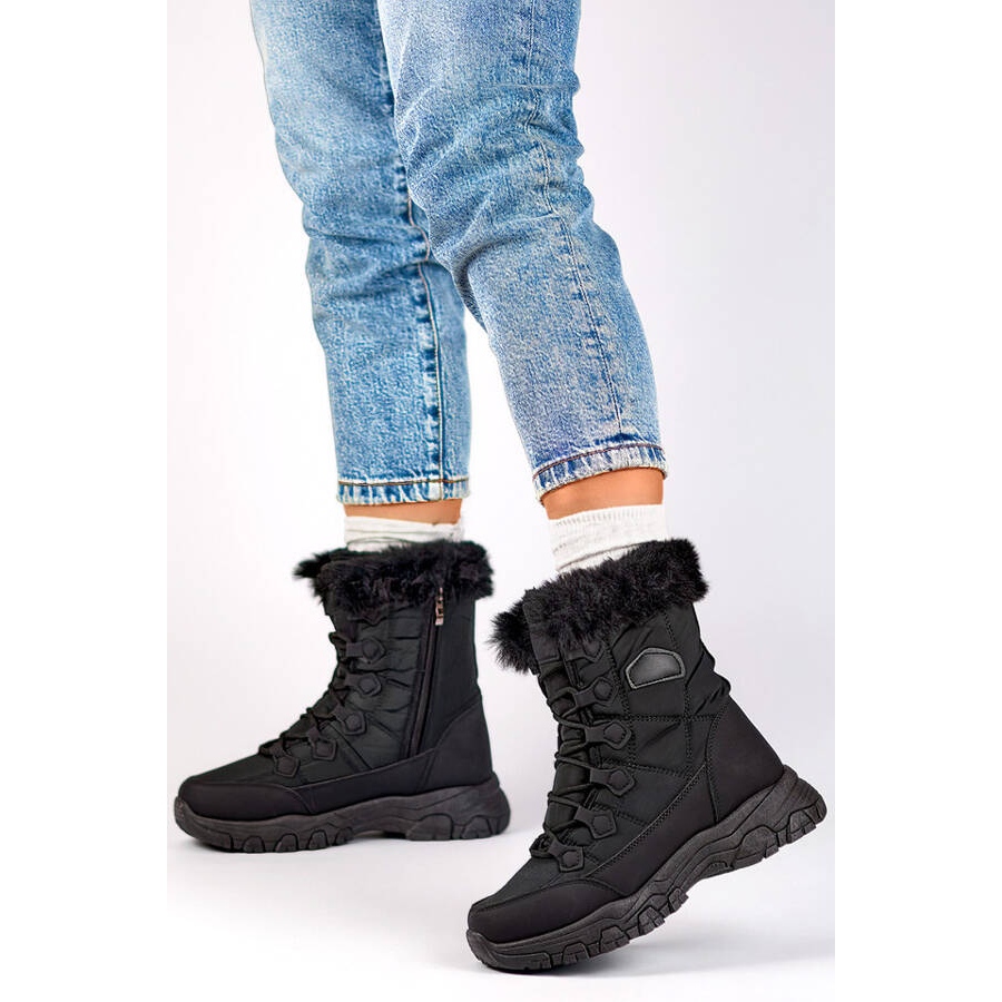Dámské zateplené sněhule s kožíškem, černá 9093B černý