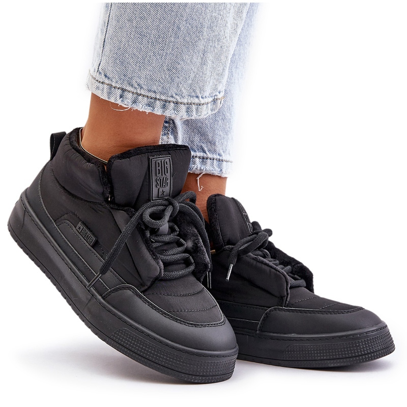 Model přitahování sahá do kotníku, díky kterému dokonale chrání nohy před chladem. Kromě toho vnitřní oteplování ve formě kožešiny poskytuje teplo i v nejchladnějších dnech. Big Star tenisky v černé se budou dokonale shodovat každý den, příležitostné stylizace, což jim dá módní a moderní vzhled.
