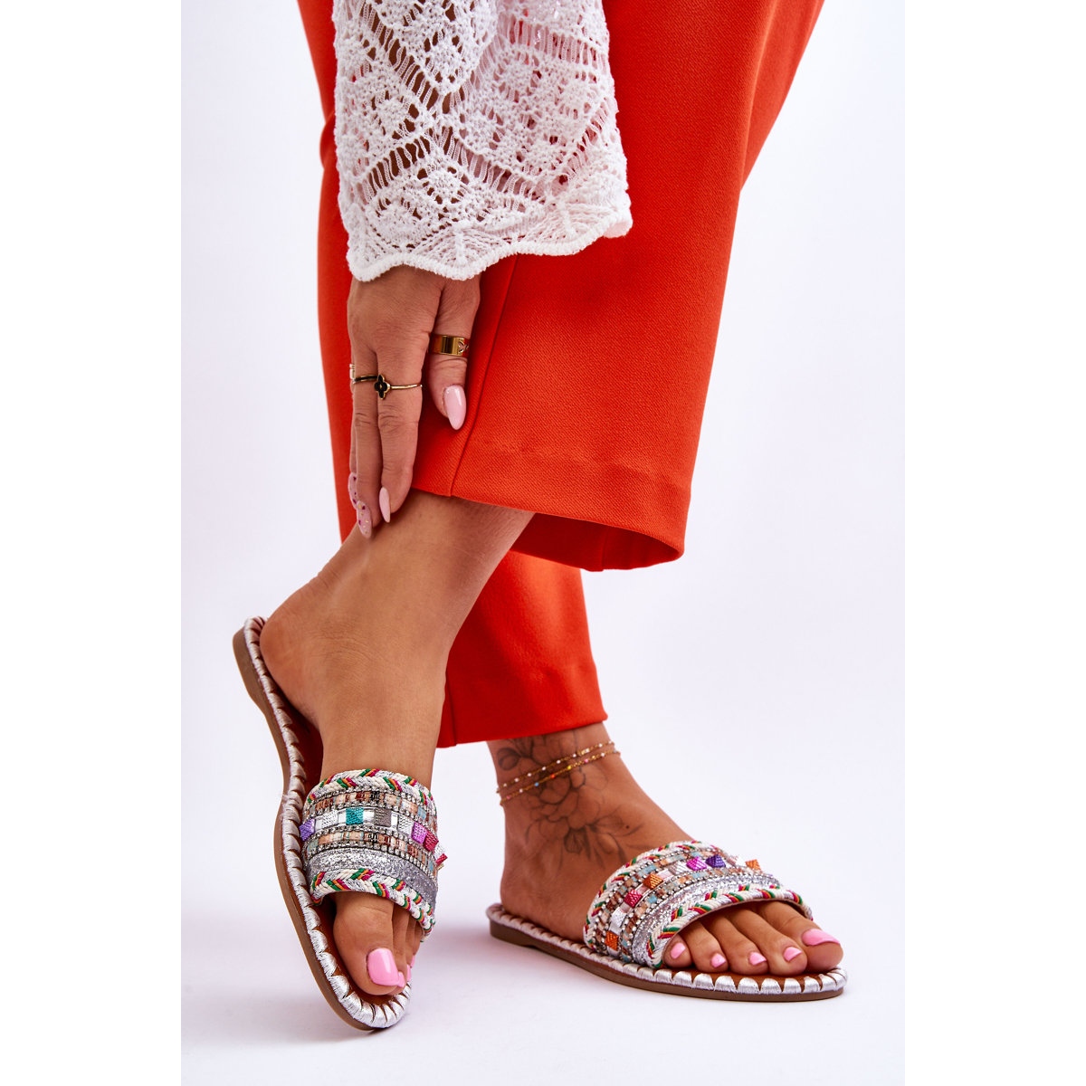 Jedná se o elegantní a stylové dámské zdobené žabky Bellisa v bílé barvě se stříbrnými akcenty, které skvěle doplní váš letní šatník. Tyto jedinečné žabky se vyznačují nejen svou estetikou, ale také pečlivým zpracováním. Svršek obuvi je navržen z kombinace materiálu a kvalitního plastu, který zajišťuje odolnost a komfort používání.