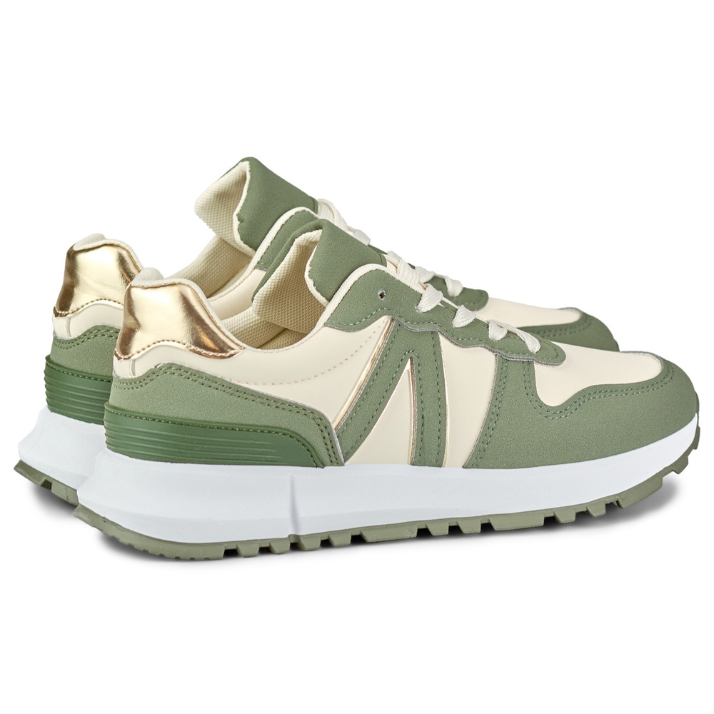 - Univerzální béžová se zelenými akcenty se snadno mísí s mnoha styly - od sportu po příležitostné.
