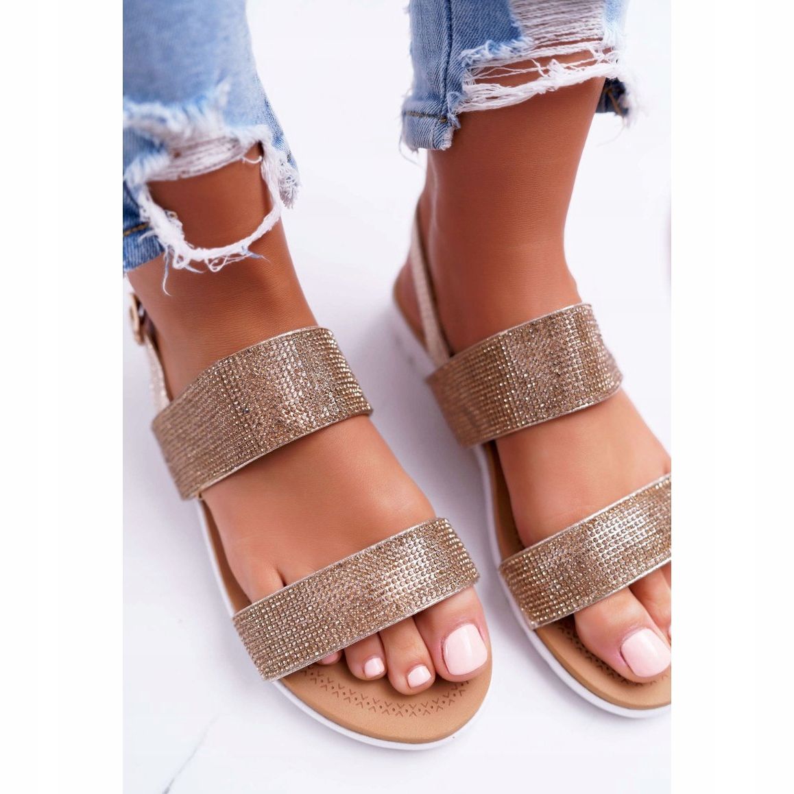 Sandály vyrobené z vysoce kvalitní ekologické kůže zaručují nejen atraktivní vzhled, ale také odolnost a pohodlí při používání. Jemná pěnová vložka zajišťuje pohodlí a zapínání na přezku umožňuje dokonalé přizpůsobení noze. Charakteristické flitry dokonale odrážejí světlo, dodávají botám elegantní lesk a vynikají v davu.