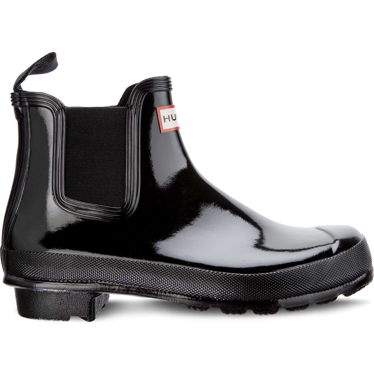 Hunter Women's Original Gloss Chelsea Rgl Black - klasické dámské holínky do deště kombinující eleganci s funkčností. Ručně vyrobené z přírodního, vulkanizovaného kaučuku, poskytují plnou voděodolnost a velkolepý, lesklý vzhled svršku. Ideální pro deštivé dny a vlhké městské podmínky.