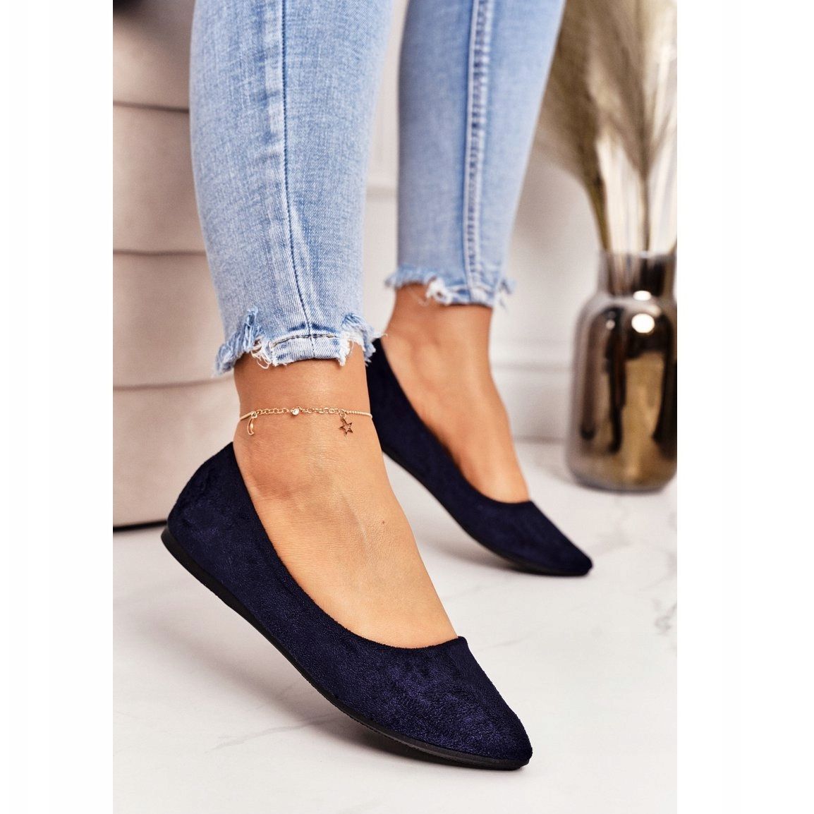 Objevte eleganci a pohodlí s jemnými špičatými balerínky z PS1! Model Dermeno vyrobený z vysoce kvalitního ekologického semiše v sobě spojuje módní design a komfort nošení. Tyto tmavě modré balerínky jsou ideální pro každou příležitost – od každodenních procházek až po formálnější příležitosti.