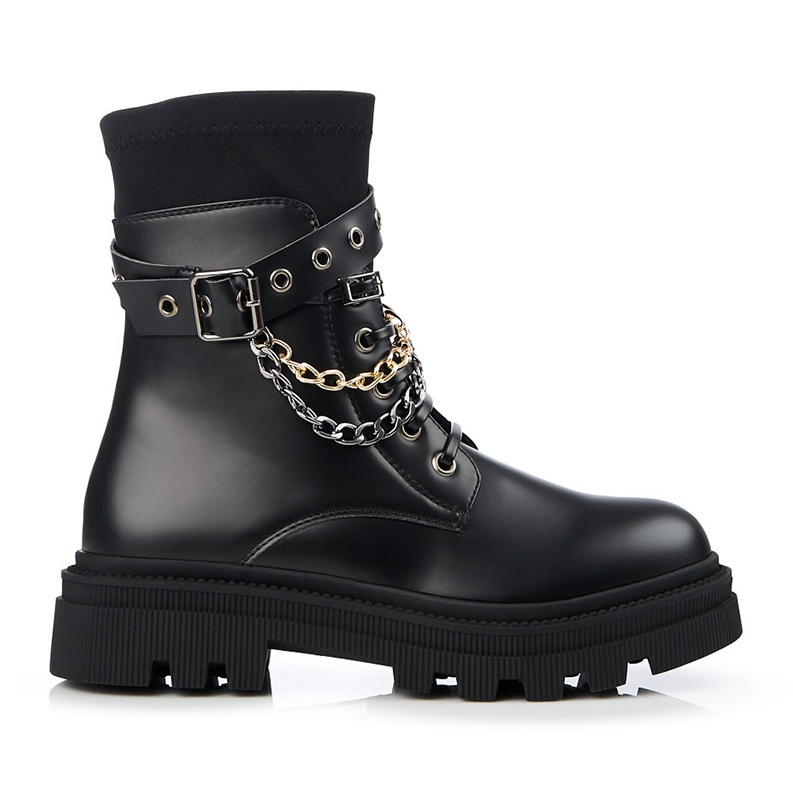 Představujeme unikátní dámskou obuv s řetízky od Shelovet, která potěší každou milovnici módní a pohodlné obuvi. Tyto černé kotníkové boty vyrobené z vysoce kvalitní ekologické kůže a textilního materiálu kombinují eleganci a rockový styl a dokonale ladí s ležérním, každodenním vzhledem.