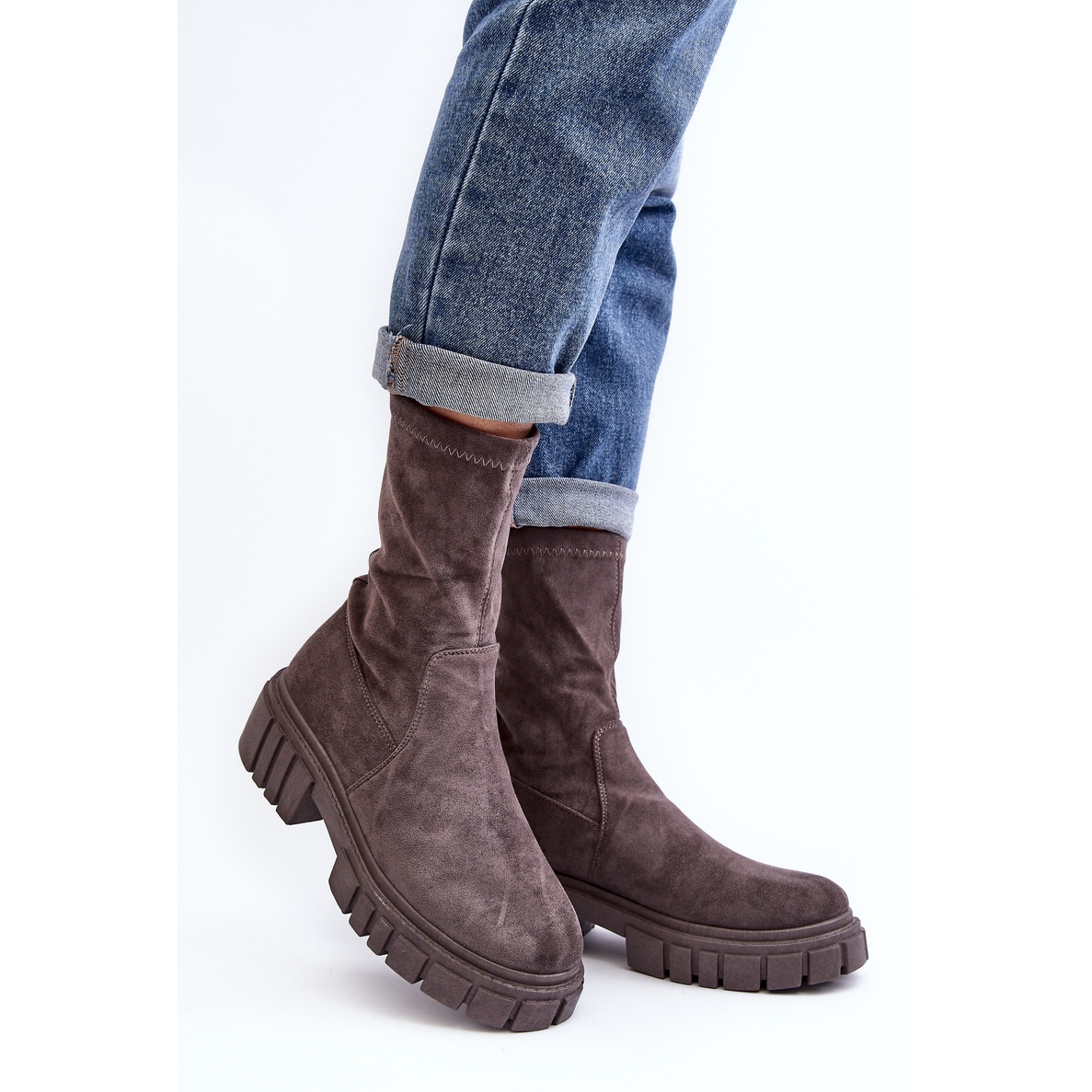 Nazouvací pracovní kozačky na plochém podpatku od značky Divella jsou perfektní volbou pro ženy, které ocení pohodlí a styl v chladnějších dnech. Šedé kotníkové boty vyrobené z vysoce kvalitního eko-semišu jsou synonymem moderního designu spojeného s pohodlím.