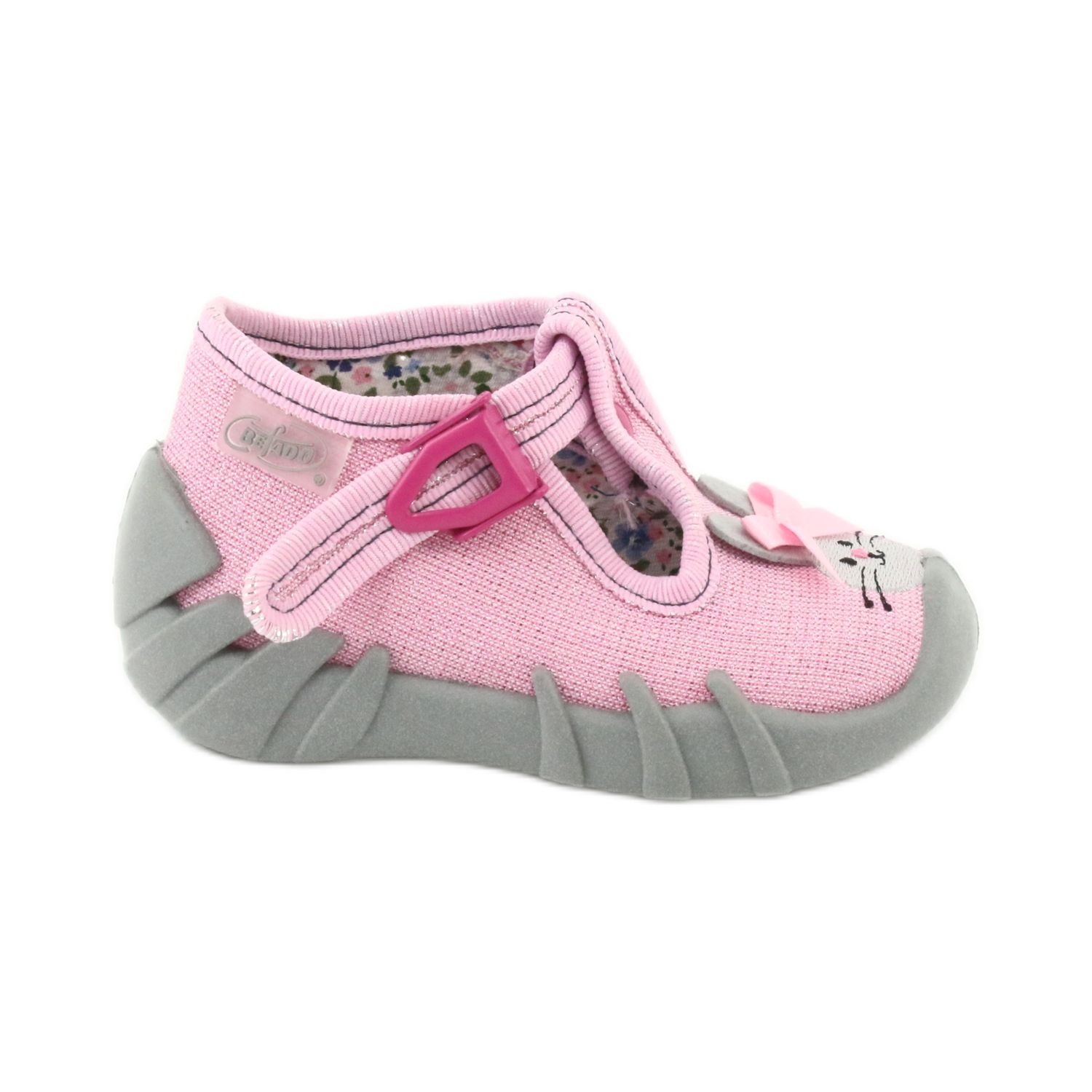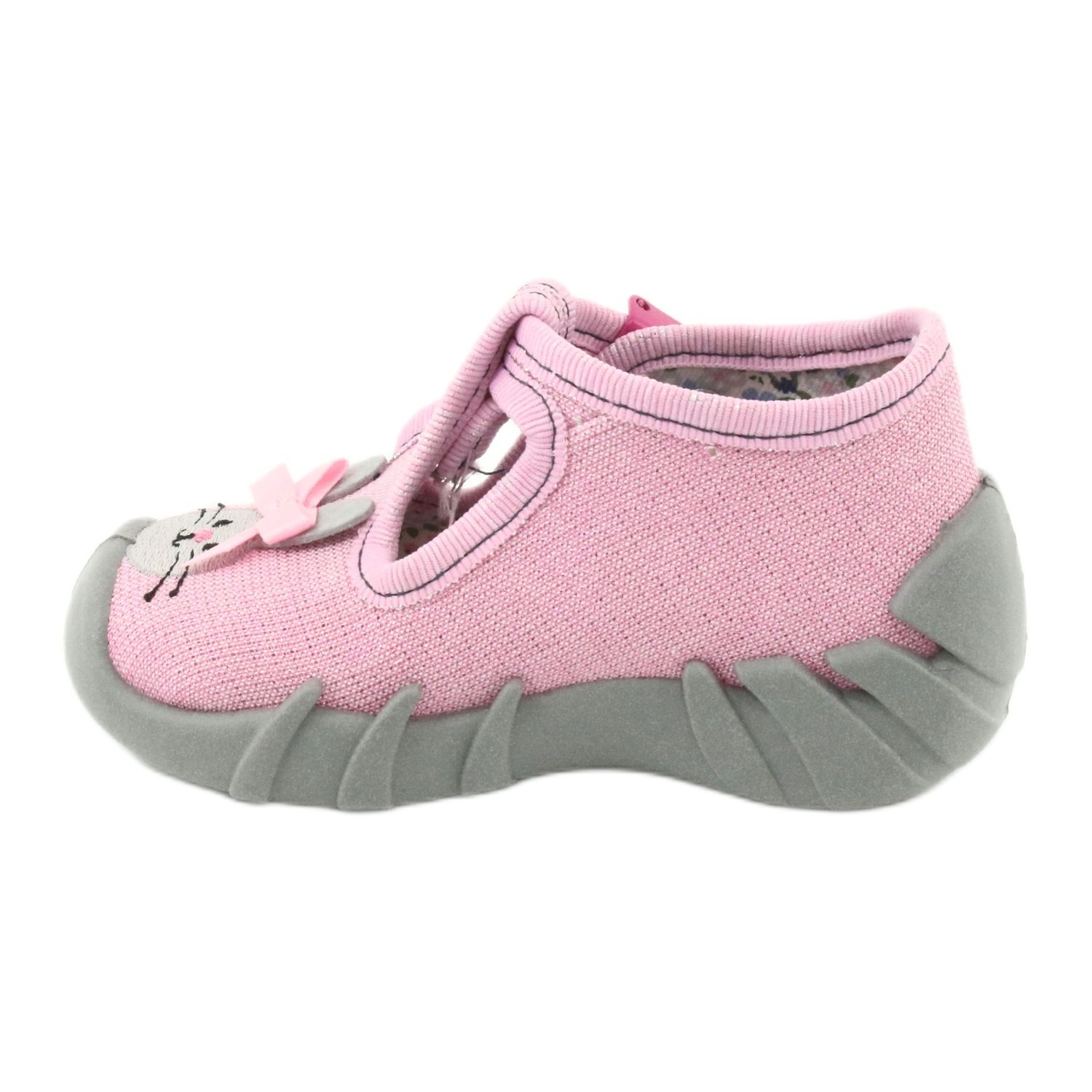 Tyto pantofle jsou nejen estetické ve své módní kombinaci růžové a šedé, ale také podporují zdraví nožiček vašeho dítěte – doporučují je cedulka „Zdravá noha“.