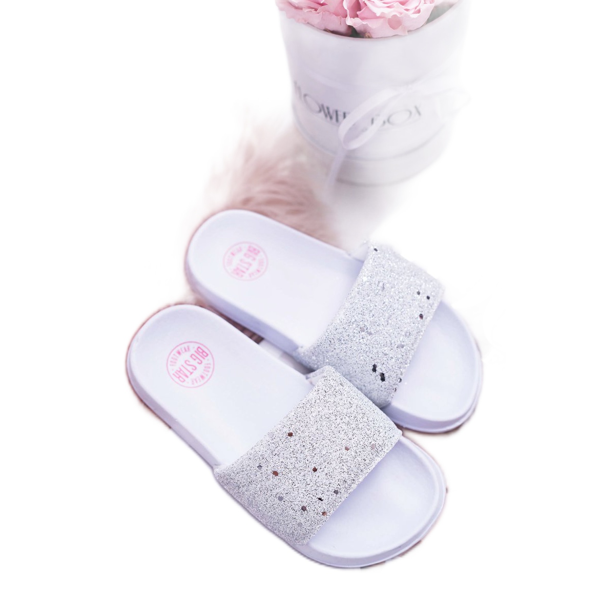 Dětské a mládežnické pantofle Big Star White Glitter AA374086 jsou perfektní volbou pro nejmenší! Tyto stylové žabky kombinují pohodlí a módní design. Jsou vyrobeny z jemného pěnového materiálu, zajišťují lehkost a pohodlí při nošení. Módní třpytivý pás nejen upoutá pozornost, ale je také podšitý měkkým materiálem, který zaručí dětem maximální pohodlí.