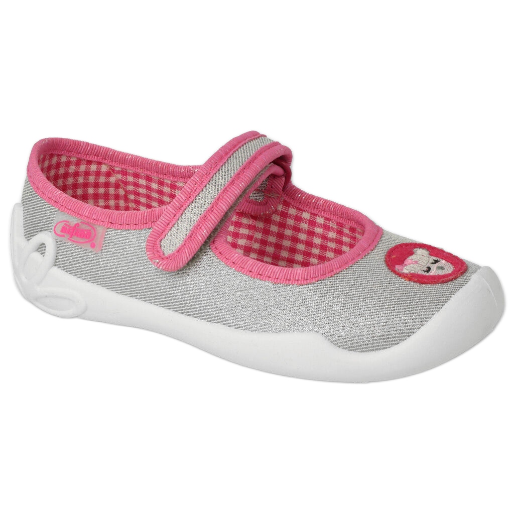 Dětské papuče Befado v růžové, stříbrné a šedé barvě jsou spojením funkčnosti, bezpečnosti a krásného designu. Balení tohoto produktu je originální a dle poskytnutých informací celek váží pouze 0,3 kg, což usnadňuje přenášení nebo odeslání, pokud jsou boty objednány jako dárek.