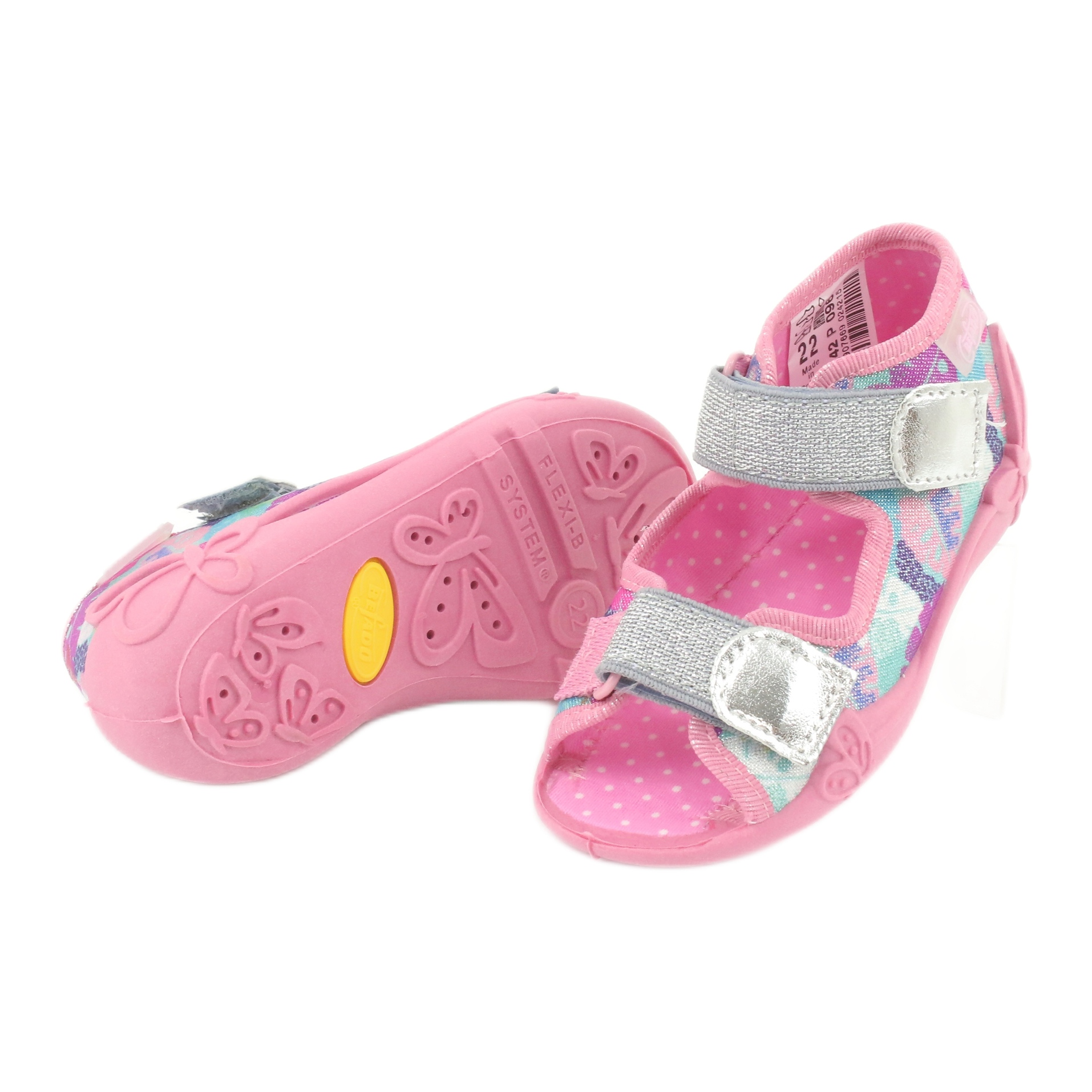 Dětská obuv Befado 242P096 je perfektním řešením pro ty nejmenší, kteří dělají první krůčky. Tyto barevné sandály v odstínech růžové a šedé, zdobené mnoha zajímavými akcenty, potěší nejen svým vzhledem, ale především zajistí bezpečí a pohodlí při hraní venku.