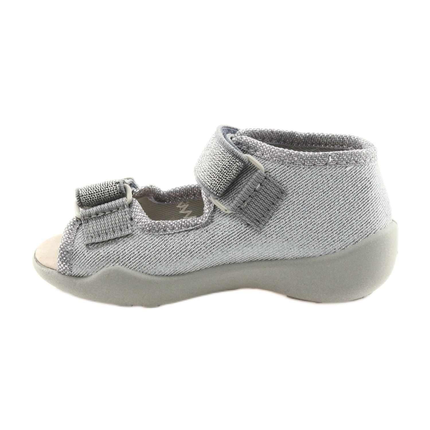 Dětské sandály Befado 342P002 v odstínech stříbrošedé jsou perfektní volbou pro teplé slunečné dny pro malé nožky. Jejich lehký a vzdušný svršek, vyrobený z bavlněných látek, zajišťuje optimální hygienu a pohodlí při nošení. Díky prodyšné podrážce budou mít nohy batolete vynikající ventilaci, což výrazně zvyšuje komfort používání.