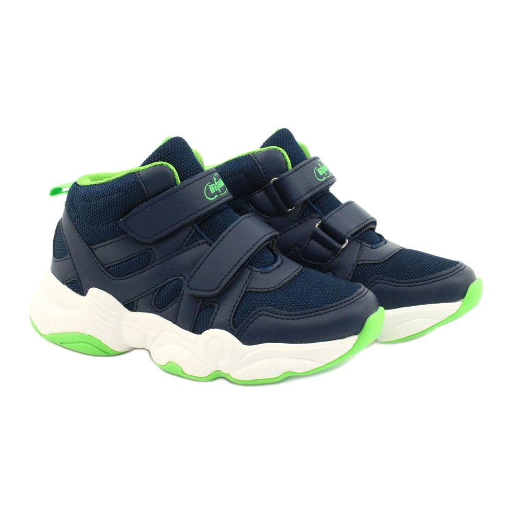 Námořnická modrá a zelená barva dodává botám sportovní charakter a vysoký svršek poskytuje dostatečnou oporu kotníku. Díky zapínání na suchý zip si děti mohou boty samy obouvat a zouvat, což napomáhá rozvoji samostatnosti.