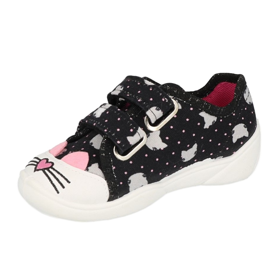 Zde jsou dětské botičky Befado 907P151, které potěší každou malou slečnu! Tyto okouzlující černé tenisky s růžovými akcenty se vyznačují fantazijním motivem kočky na špičkách, který jistě upoutá pozornost těch nejmenších.
