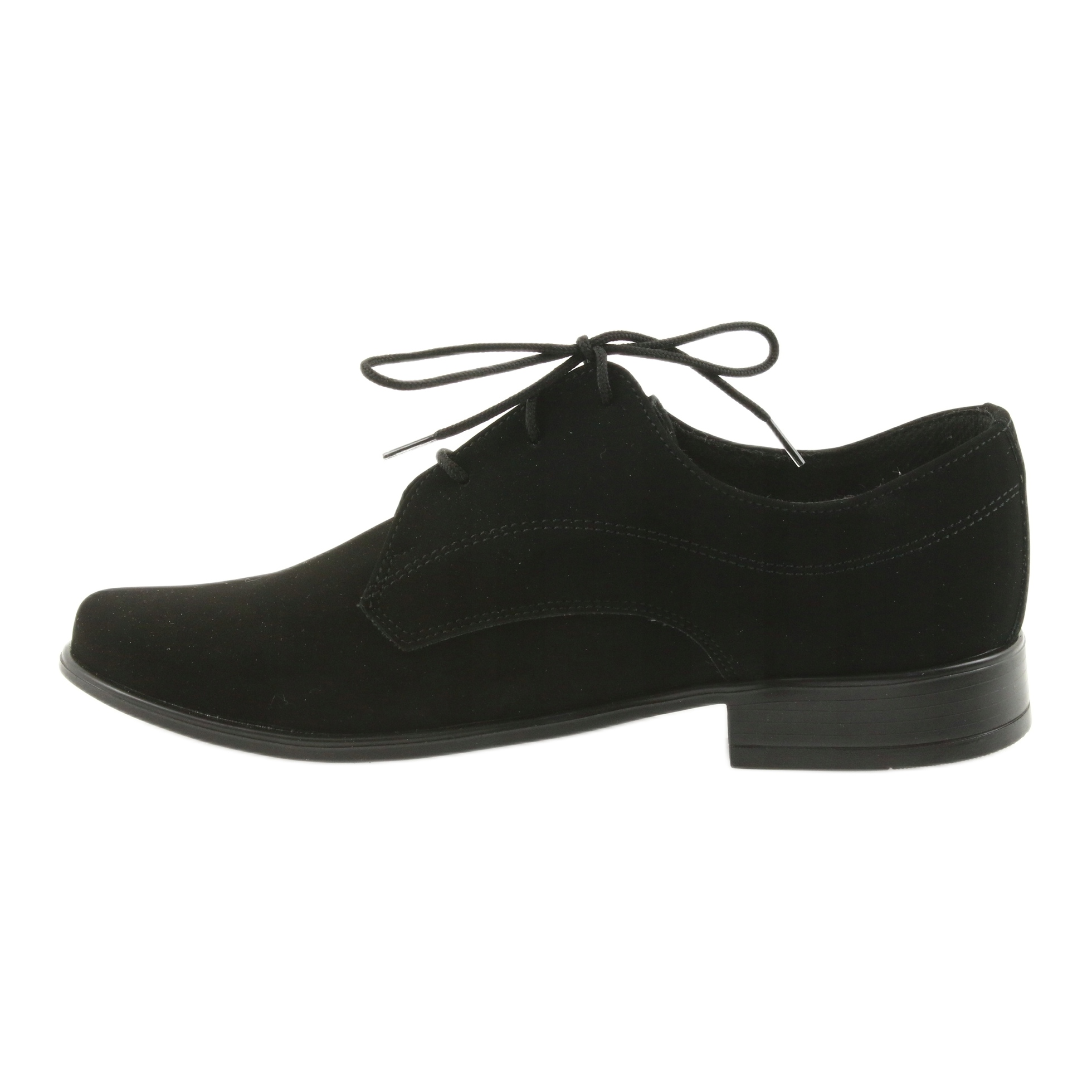 Elegantní boty polské značky Miko, Model 014, vytvořené pro chlapce pro jedinečné oslavy - společenství, svatby a další formální příležitosti. Klasický, nadčasový řez v tmavě černé s jemným šitím vypadá stylově a jemně.