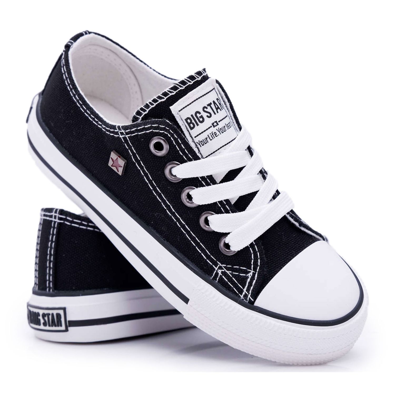 2 cm vysoká podrážka vyrobená z gumy zaručuje dostatečnou přilnavost a odolnost, díky čemuž jsou tenisky ideální jak na hřiště, tak na každodenní procházku. Podrážku navíc zdobí logo značky Big Star, které zdůrazňuje jejich jedinečný charakter.