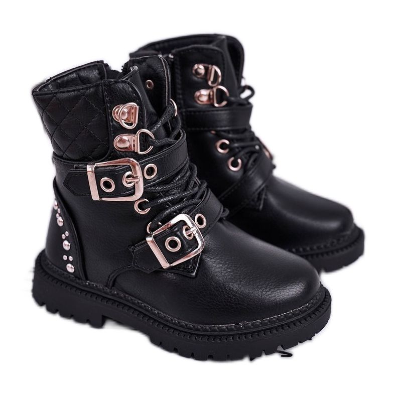 FRROCK FRROCK Dětské boty zateplené kožešinovou černou panenkou černá zlatý
