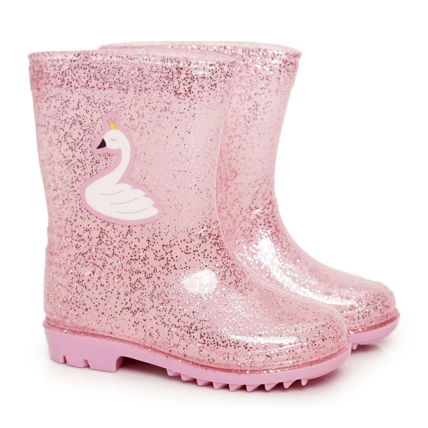 Dětské brokátové galoše s růžovou labutí růžový stříbro