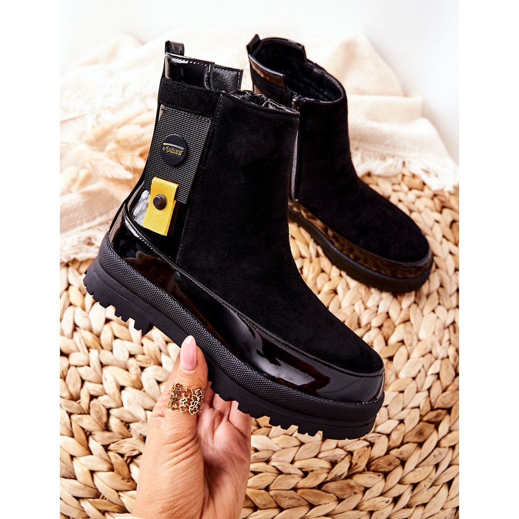 Svršek bot je vyroben z vysoce kvalitní ekologické lakované kůže a imitace semiše, díky čemuž vypadají mimořádně stylově. Černé kotníkové boty se perfektně hodí do různých stylů, od ležérních až po elegantnější a dodají každému outfitu šmrnc.