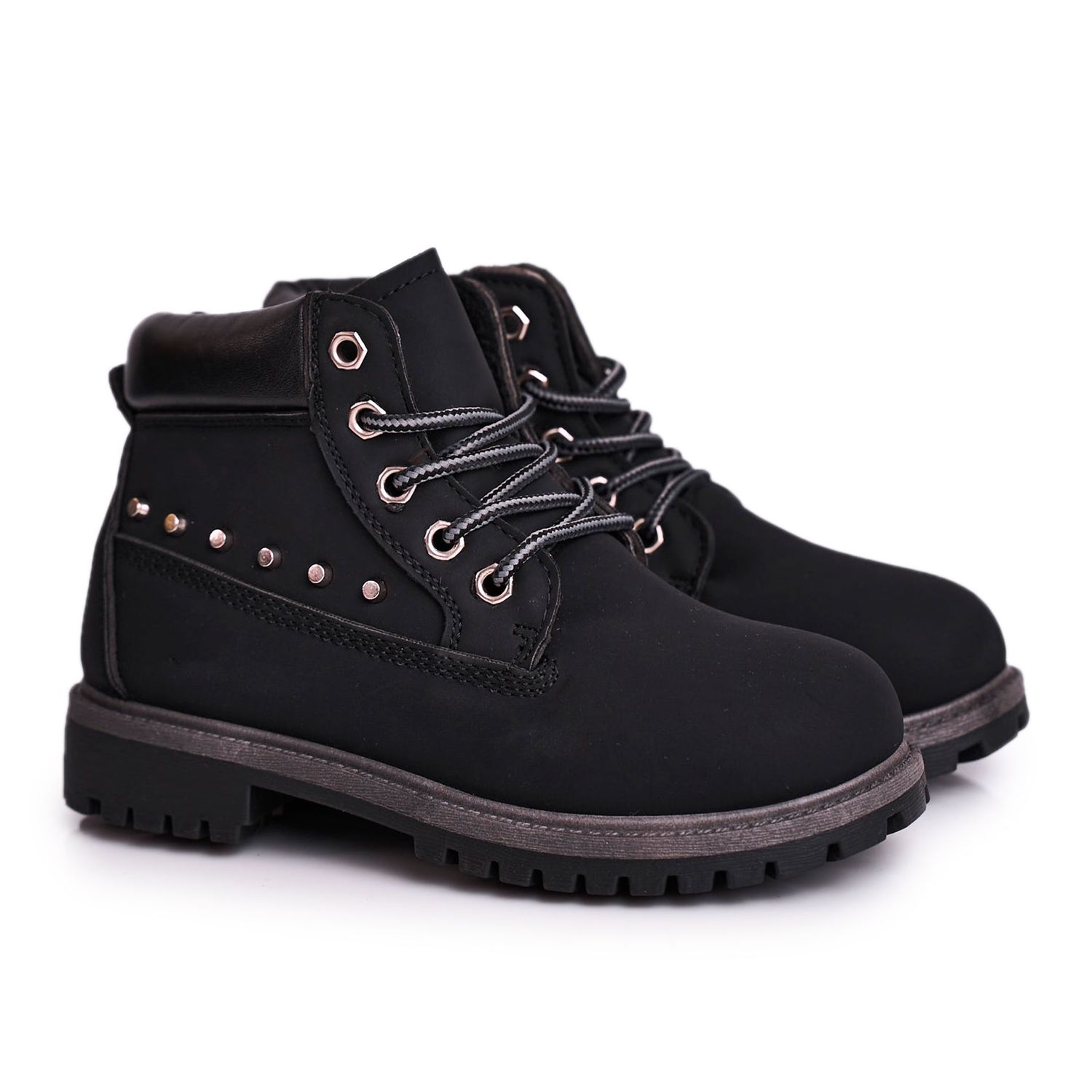 MSMG Dětské černé teplé gonzo boty s cvočky černý